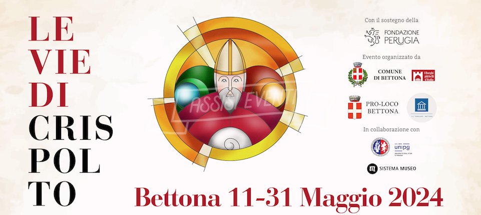 Dall’11 al 31 Maggio torna la seconda edizione de LE VIE DI CRISPOLTO, evento promosso dal Comune di Bettona che ruota intorno la figura del Santo Martire Vescovo Crispolto, campione di fede ed evangelizzatore della zona della Valle Umbra. Una personalità fondamentale per la diffusione del Cristianesimo in Umbria, la cui storia va riscoperta e raccontata per comprendere al meglio lo sviluppo e l’evoluzione della stessa Bettona. Intorno a San Crispolto ruotano moltissimi aspetti culturali, artistici, documentali che nel tempo sono stati custoditi, ma che non hanno trovato un ampia diffusione. Questo progetto vuole promuovere la conoscenza e la consapevolezza in tutto il territorio di questa figura così importante e del ruolo che ha avuto.