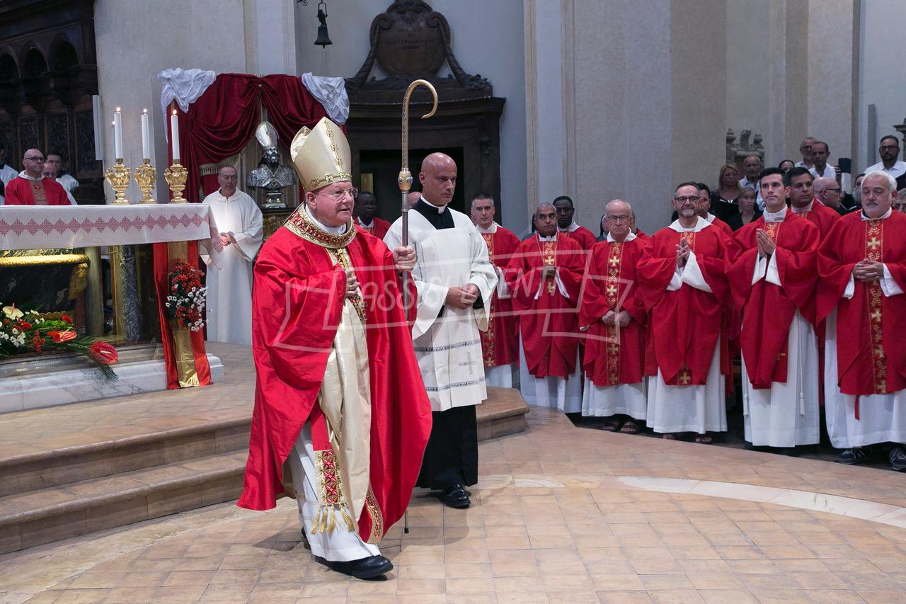 “Non vi scoraggiate di fronte alle fatiche di ogni giorno: non temete di volare alto e di centrare tutto sul Vangelo di Gesù”. Lo ha detto il vescovo delle diocesi di Assisi – Nocera Umbra – Gualdo Tadino e di Foligno, monsignor Domenico Sorrentino, durante il Pontificale da lui presieduto martedì 12 agosto per la solennità di San Rufino, patrono della città di Assisi e della diocesi. Alla solenne celebrazione nella cattedrale assisana, animata dalla Cappella musicale di San Rufino, erano presenti le autorità civili e militari e anche della Regione, della Provincia e degli altri Comuni della diocesi.