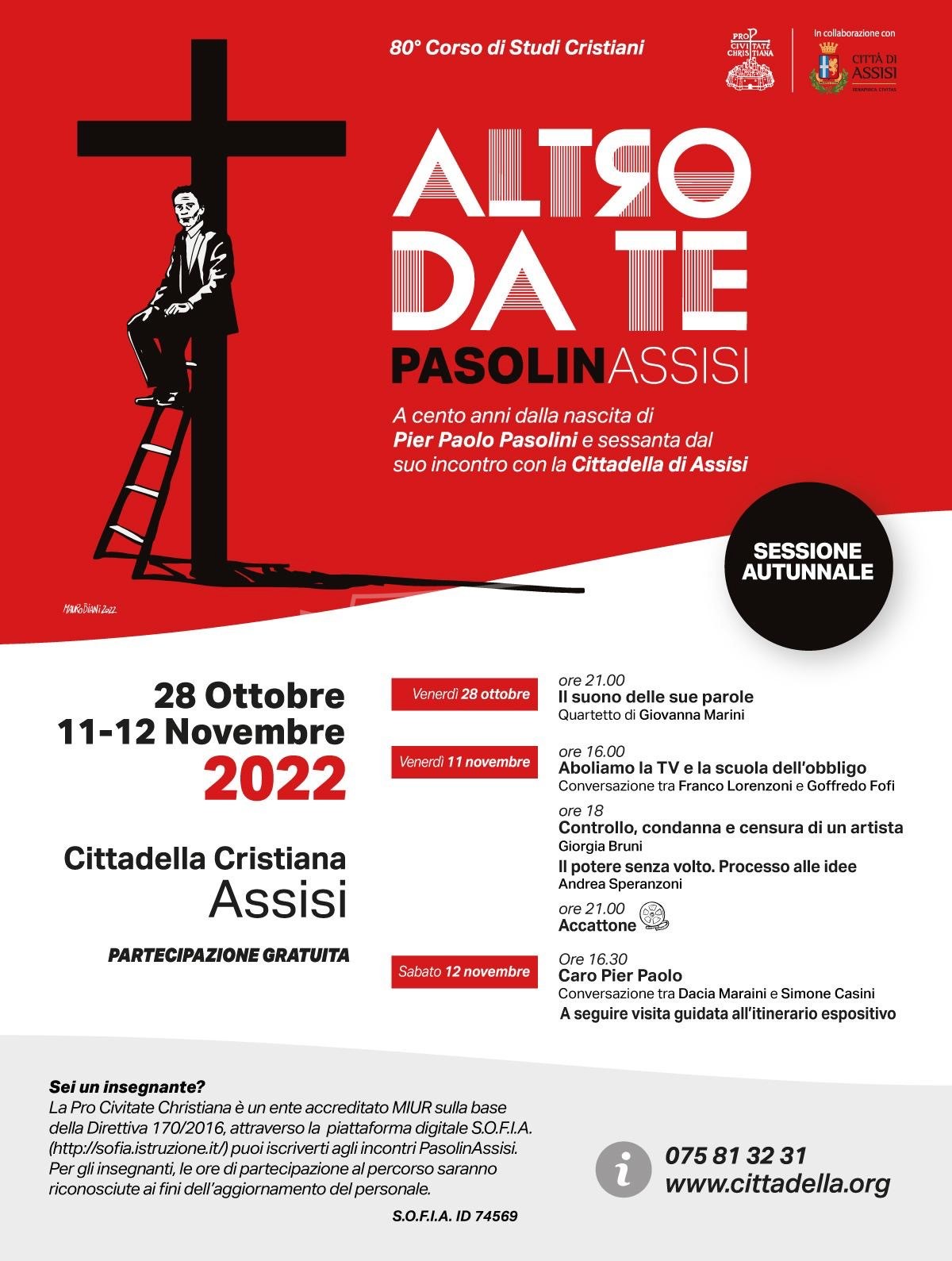 La rassegna PasoliniAssisi rientra nell’ambito dell’80esimo corso di studi della Pro Civitate Christiana in collaborazione col Comune di Assisi.