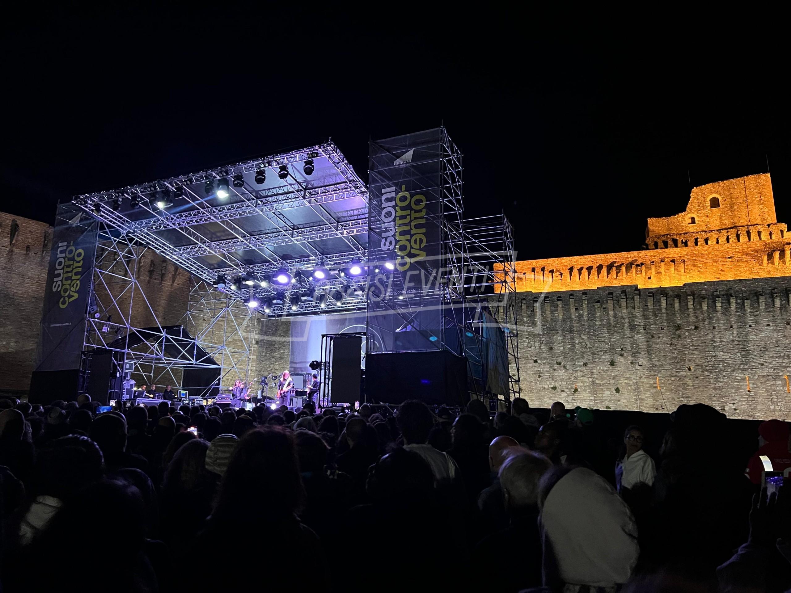 Tanti i brani eseguiti di quell’album, fino alla “Canzone di Marinella”, cover di De Andrè cantata da Manuel Agnelli sul palco della Rocca Maggiore, un classico di questo tour.