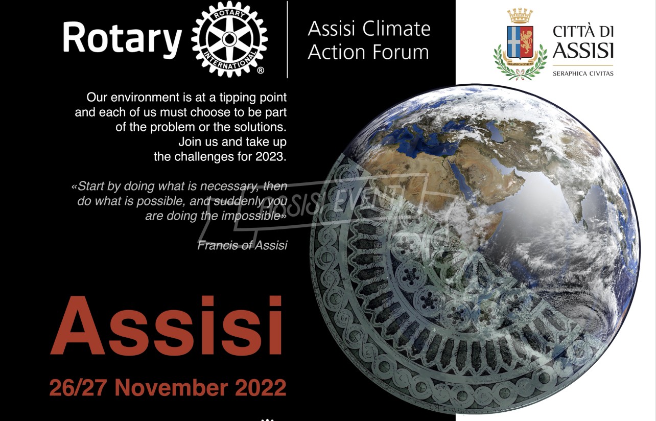 In linea con gli obiettivi e le strategie previste dalla settima area di intervento del Rotary International, dedicata al Sostegno Ambientale, i Rotary Club di Assisi e di San Francisco (USA) e il Distretto Rotary 2090 organizzano l’Assisi Climate Action Forum, un evento internazionale in programma il 26 e il 27 novembre e che prevede la partecipazione sia in presenza (alla Cittadella della Pro Civitate Christiana) che online.