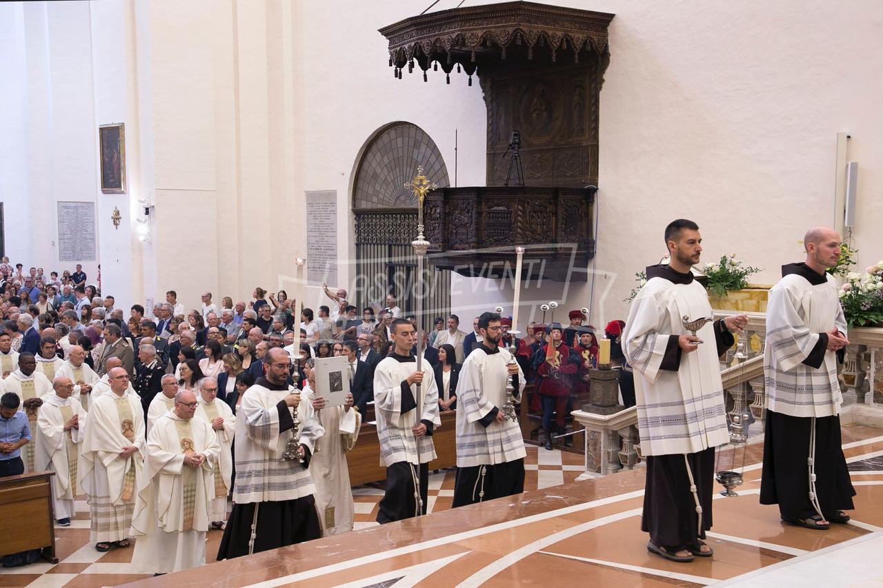 Nel corso dell’omelia, Mons. Antonio D’Angelo ha sottolineato l’importanza mariana delle due basiliche e il valore del perdono come dono prezioso offerto dalla Madre di Dio all’umanità: “San Francesco e San Celestino V ci invitano, con la loro testimonianza, a guardare al perdono come fiamma che riscalda il cuore e spezza ogni catena di violenza, per costruire una nuova umanità”.