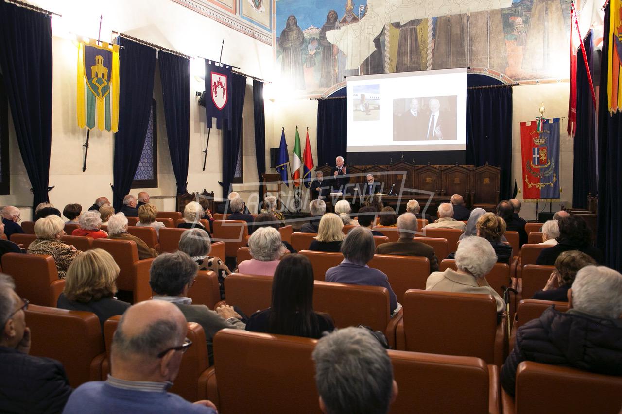 La sala della Conciliazione gremita di amici, cittadini e appassionati, tutti presenti per rendere omaggio a Massimo Zubboli e al suo instancabile impegno per la comunità. La cerimonia ha visto interventi autorevoli da parte di amici e colleghi, accompagnati da proiezioni che hanno ripercorso momenti significativi della vita e dell’attività di Zubboli, e dai saluti degli organizzatori.