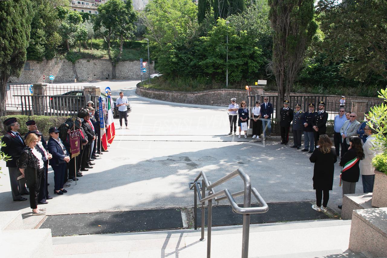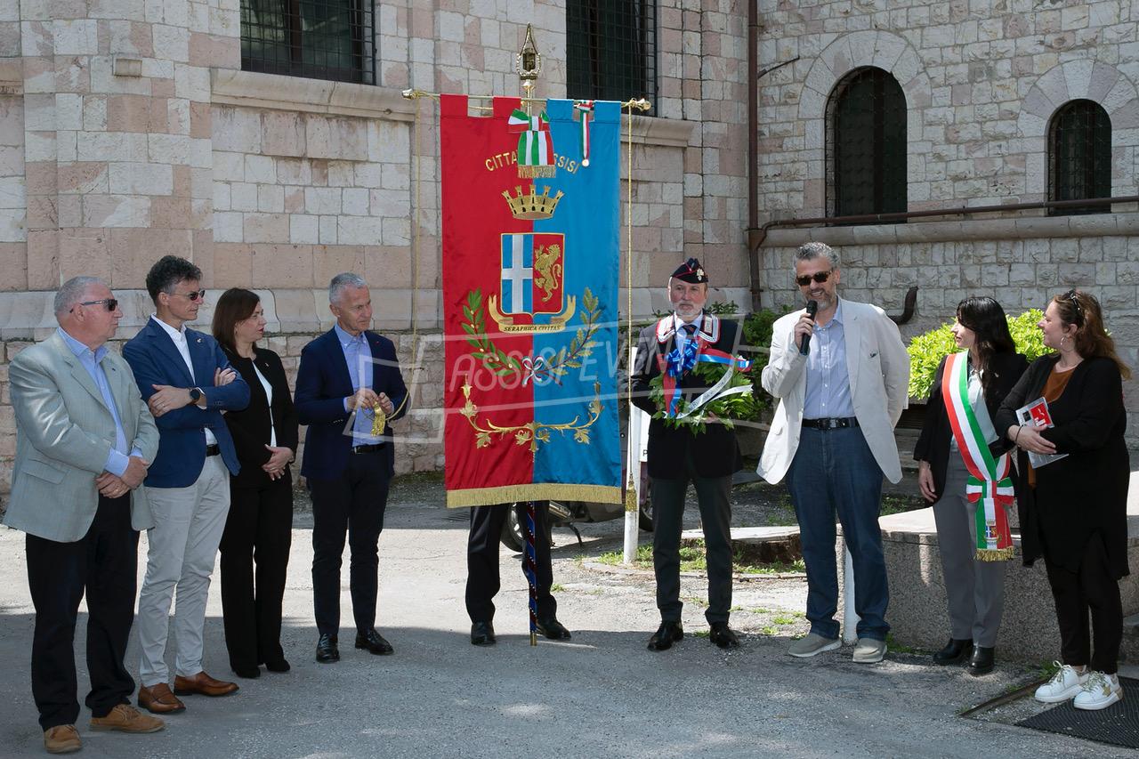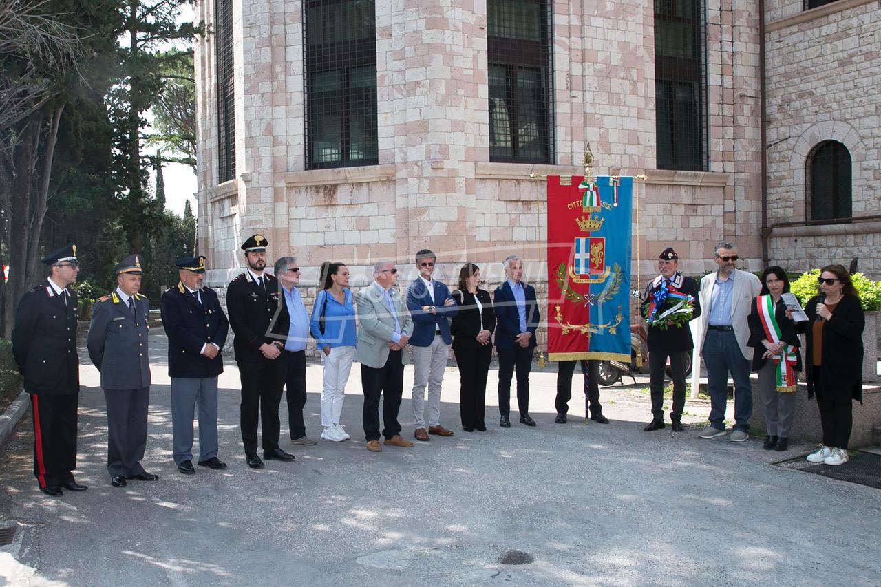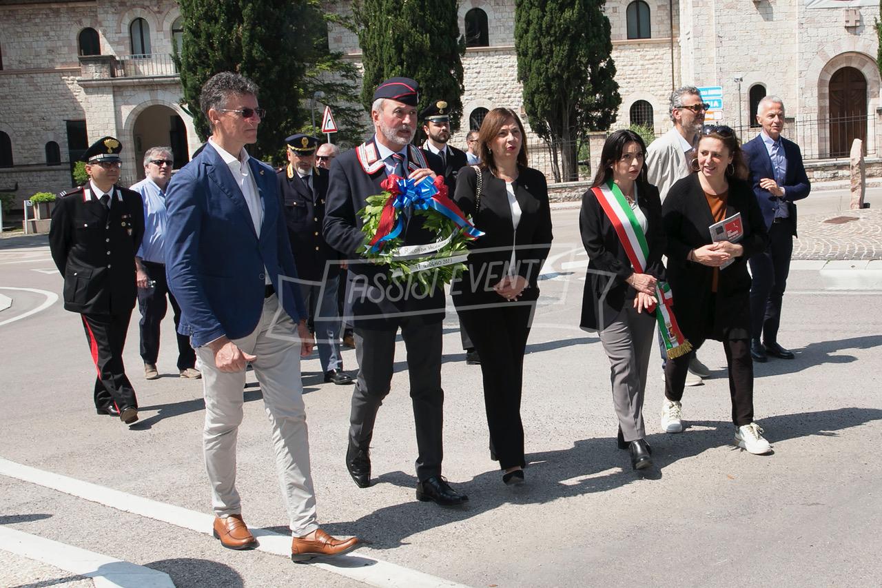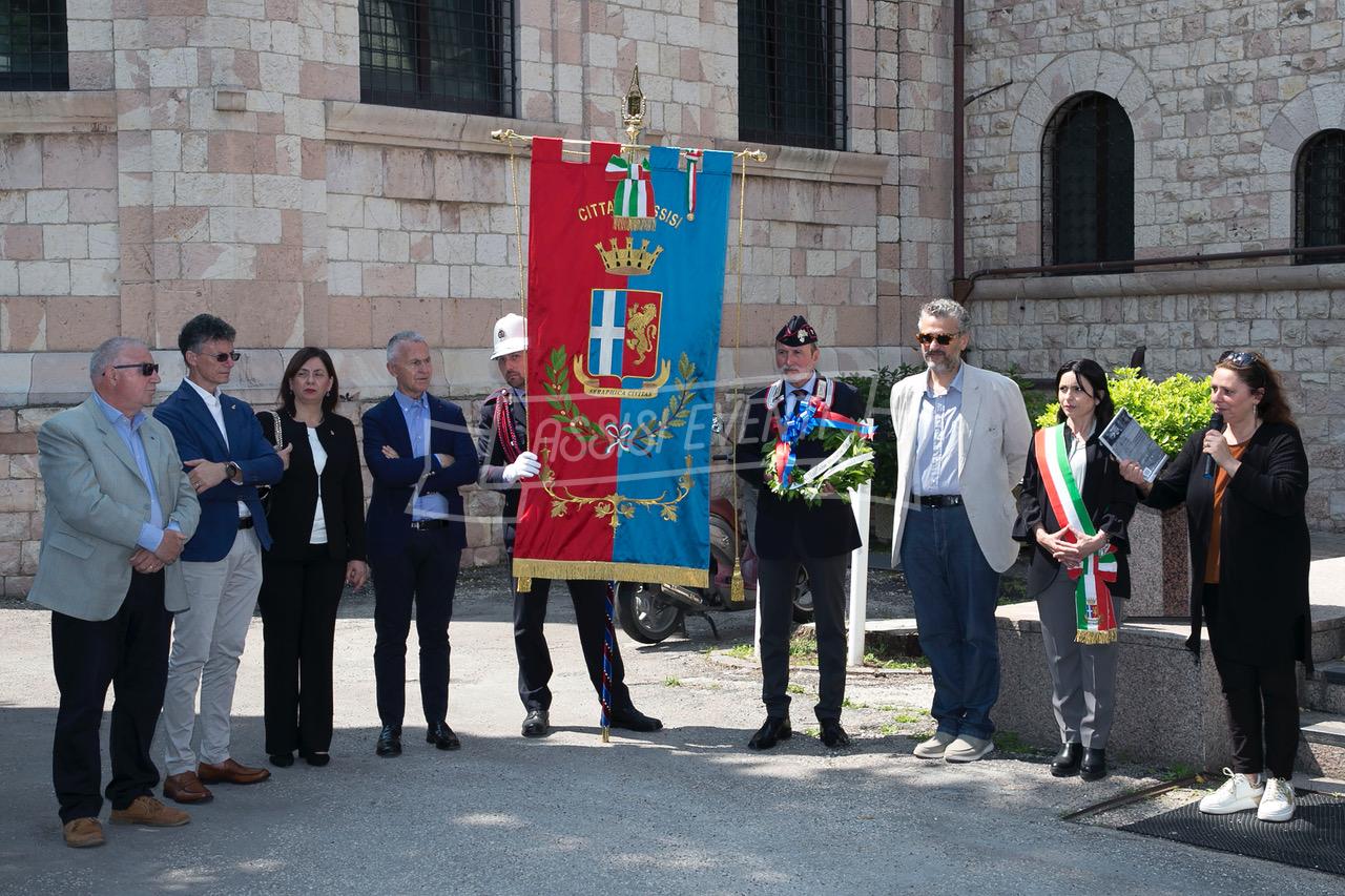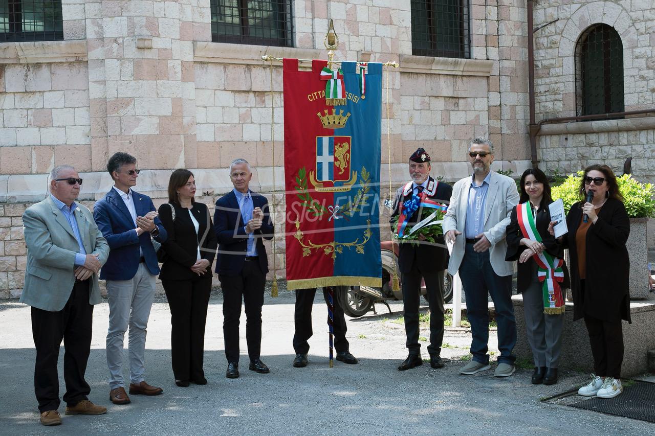 Ci si è poi spostati tutti di fronte alla lapide di Muller, fatta ripulire dall’amministrazione, per rendere omaggio al colonnello che si adoperò per salvare Assisi dai bombardamenti e farla dichiarare città ospedaliera (uno degli ospedali tedeschi era allestito proprio al Serafico). Il sindaco Proietti ha deposto una corona di alloro e si è osservato un minuto di silenzio