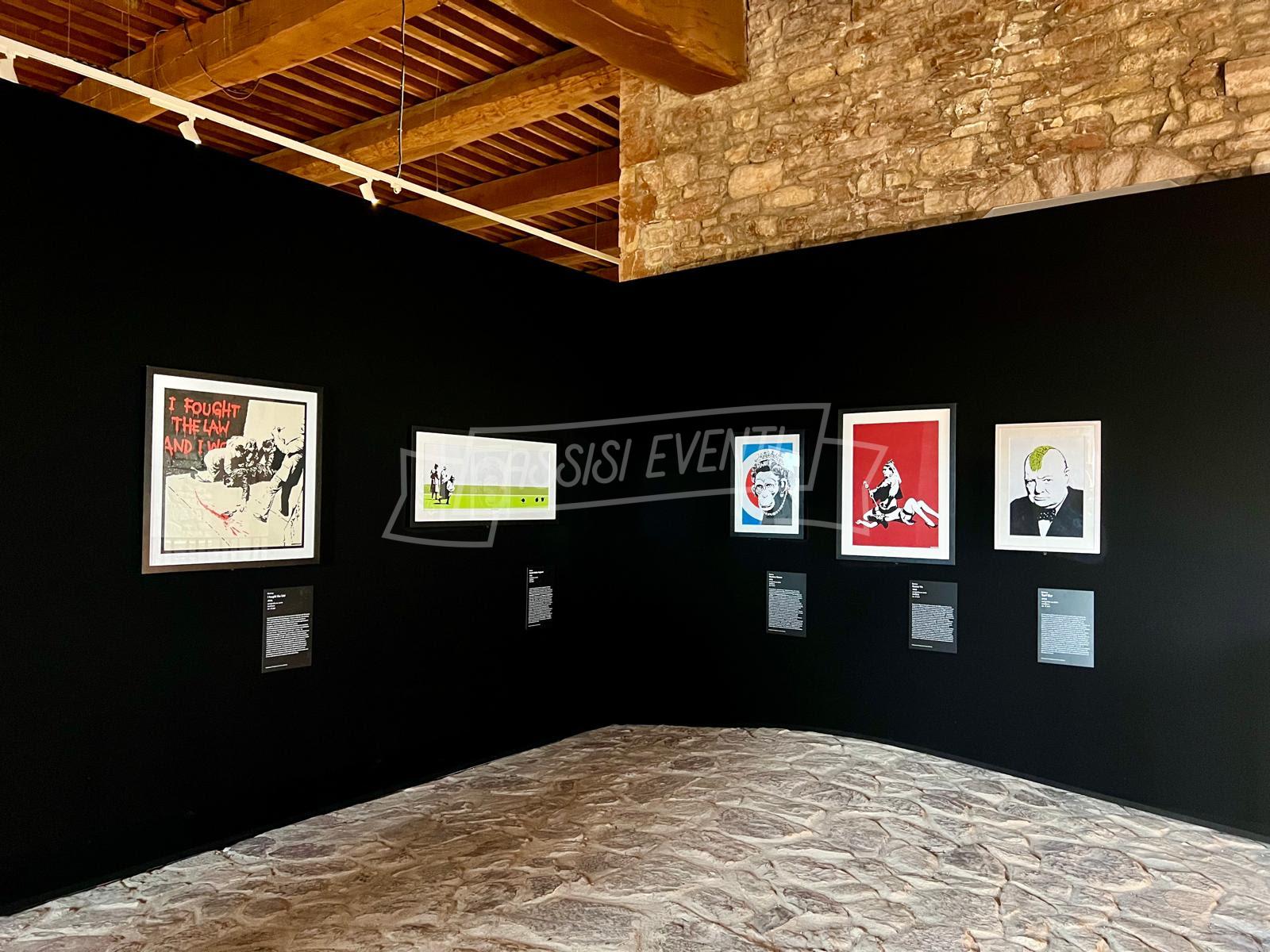 È stata inaugurata il 16 aprile scorso e proseguirà fino al 2 novembre 2025. È visitabile tutti i giorni, negli orari di apertura della Rocca Maggiore di Assisi. È divisa in sezioni, ponendo il pubblico di fronte a opere originali che l’artista ha creato nel suo studio dal 1998 al 2010. Tra queste alcune immagini iconiche e di grande valore, come Flower Thrower, il lanciatore di fiori, e Girl with Balloon, la ragazza con il palloncino rosso a forma di cuore, nella sua versione originale del 2004. Pezzi straordinari ed esclusivi, perché se in molti conoscono il lavoro pubblico di Banksy, pochissimi hanno accesso al suo lavoro prodotto in studio.
