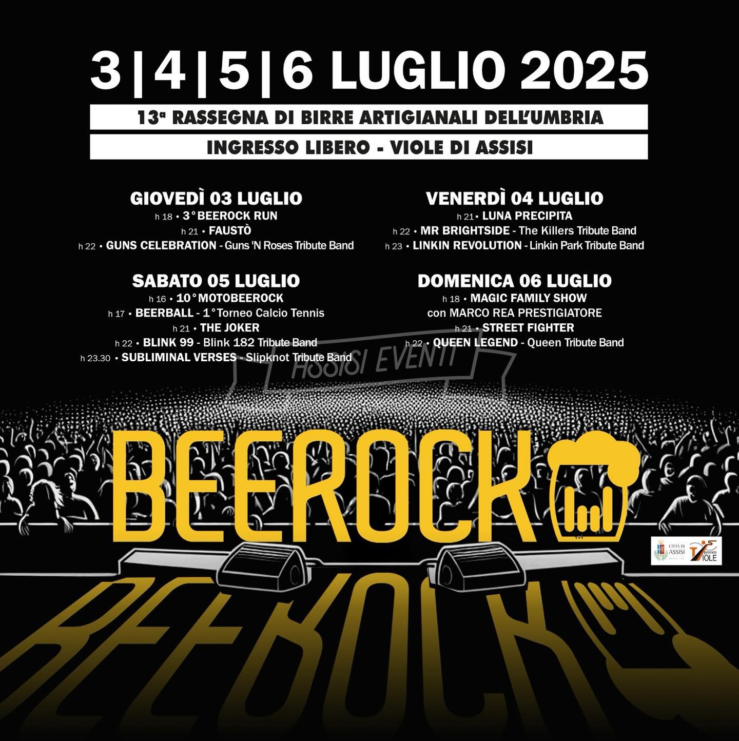 Al via la manifestazione da giovedì 3 luglio: ad aprire le danze Faust e la tribute band Guns Celebration (omaggio alla più note band Guns N’ Roses). Il giorno successivo, venerdì 4 luglio, saliranno sul palco prima Gasp Inside e Mr. Brightside (in onore dei The Killers), per poi chiudere la serata con Linkin Revolution (cover band dei Linkin Park). Penultima serata del festival, sabato 5 luglio, sarà animato dal tributo italiano ai Blink 182: Pushers of Gold e Blink 99 per poi concludere la serata con i Subliminal Verses, tribute band degli Slipknot. Domenica 6 luglio vedrà la chiusura di Beerock con l’intramontabile repertorio dei ben noti Queen, omaggiati dagli Street Fighters e ai Queen Legend Tribute.