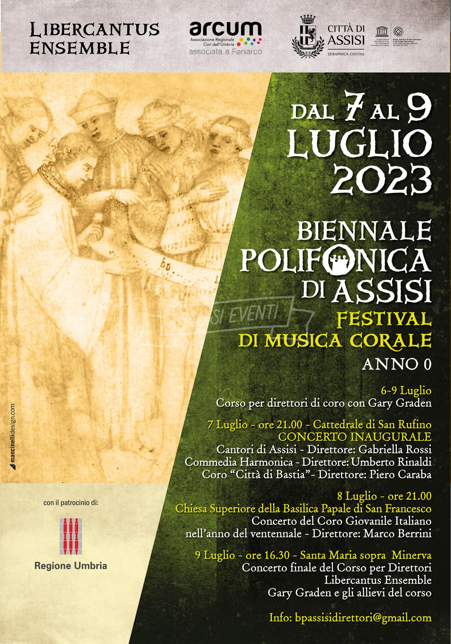 Portare ad Assisi, terra del Cantico delle Creature di San Francesco, le eccellenze italiane e internazionali dei cori per promuovere la musica come strumento di aggregazione e di formazione. È questo l’obiettivo della “Biennale Polifonica di Assisi”, primo festival di musica corale, promosso in città dal 7 al 9 luglio prossimi. L’iniziativa – con il patrocinio del Comune di Assisi – è organizzata da Libercantus Ensemble, insieme ad Arcum (Associazione regionale dei cori dell’Umbria), con la direzione artistica del maestro Vladimiro Vagnetti e di Simone Menichelli, architetto innamorato della sua Assisi.