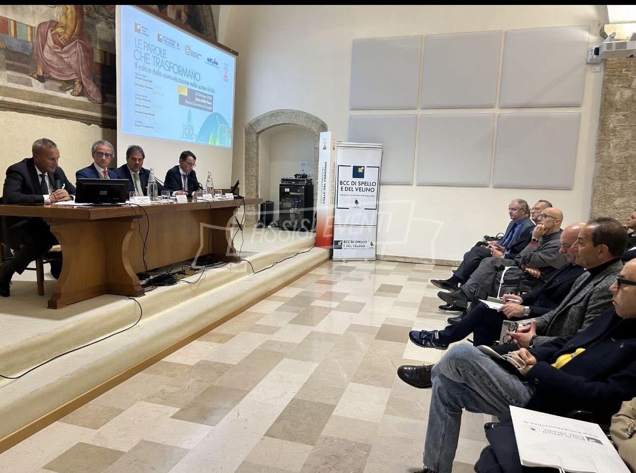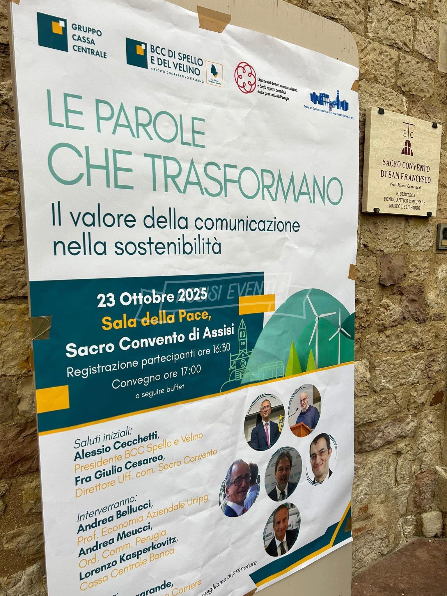 La sostenibilità prende forma quando la parola si fa azione. È questo il messaggio al centro del convegno “Parole che trasformano – Il valore della comunicazione nella sostenibilità”, organizzato dalla BCC di Spello e del Velino nella Sala della Pace del Sacro Convento di Assisi. Tanti i presenti che non hanno voluto mancare all’appuntamento.