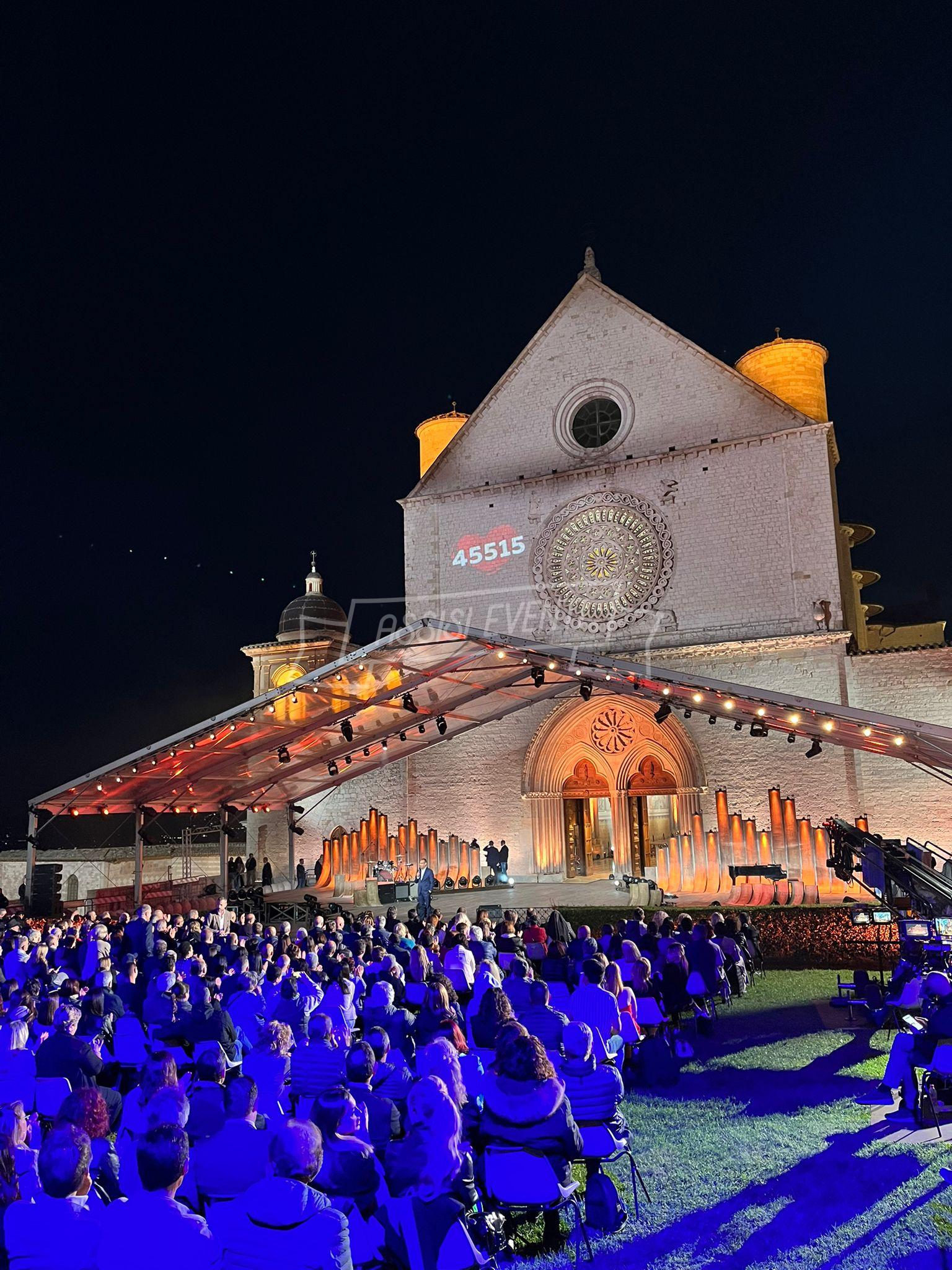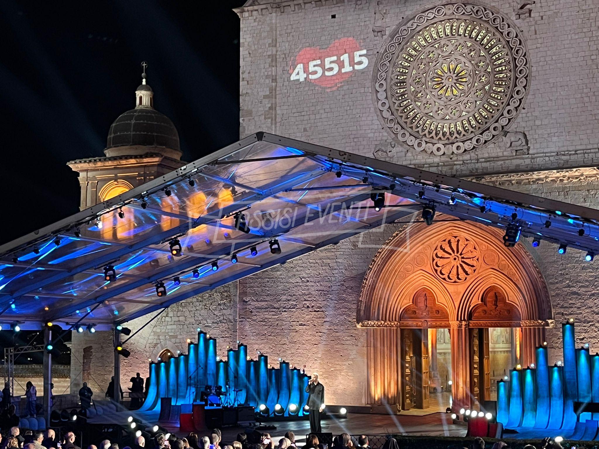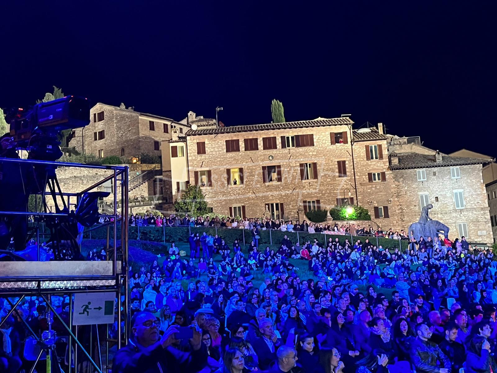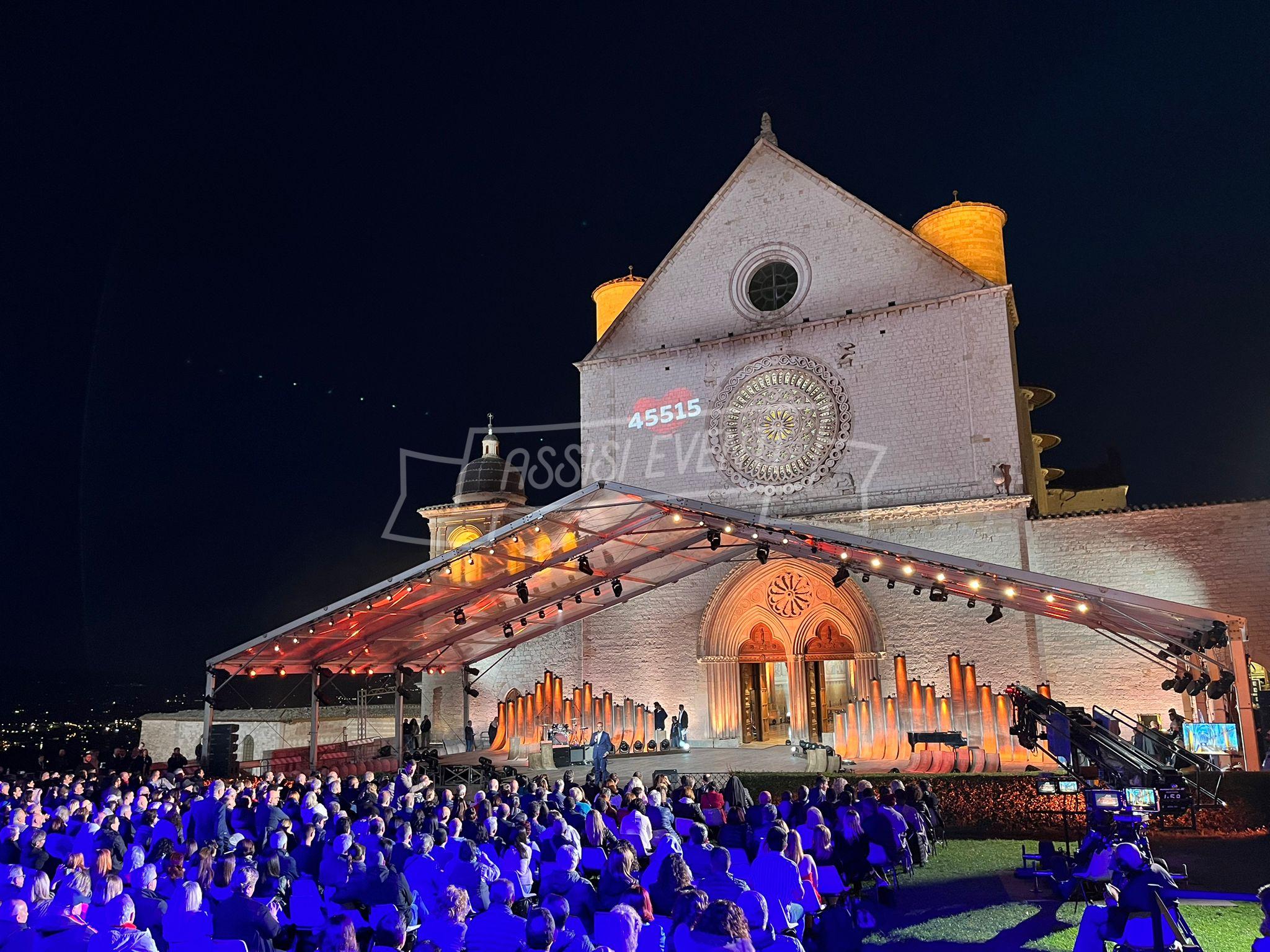 Sul palco anche l’ideatore di ‘Con il Cuore, nel nome di Francesco’, Padre Enzo Fortunato, oltre al custode del Sacro Convento Padre Marco Moroni e all’intervento del vescovo di Assisi, Gualdo Tadino, Nocera Umbra e della diocesi di Foligno monsignor Domenico Sorrentino. Presenti il sindaco di Assisi e presidente della Provincia di Perugia Stefania Proietti e l’assessore della Regione Umbria Paola Agabiti Urbani, oltre a tante personalità. Svelato anche il tradizionale foulard dello stilista Claudio Cutuli.