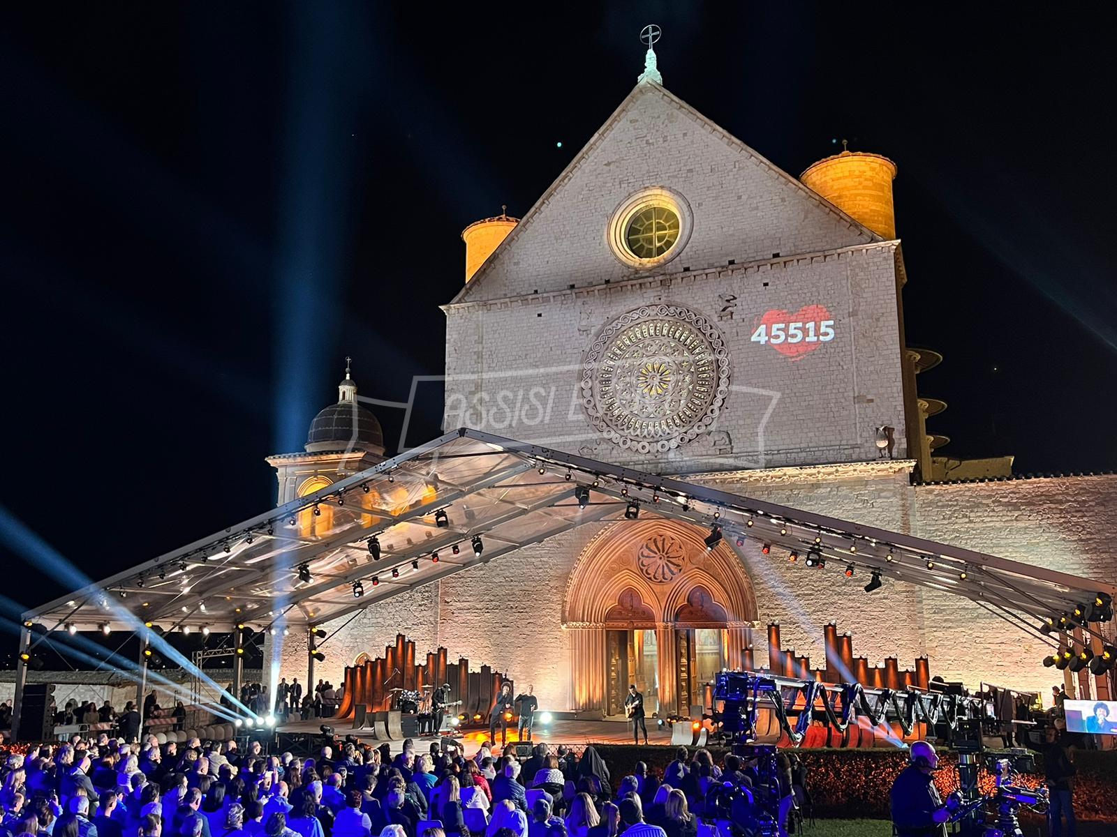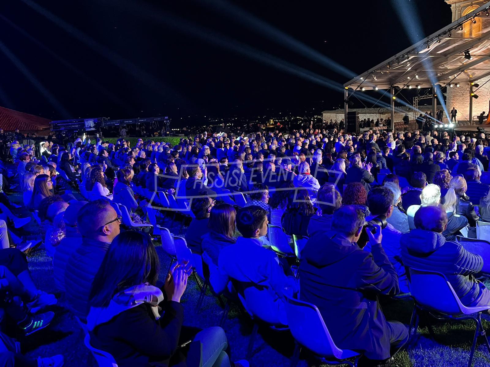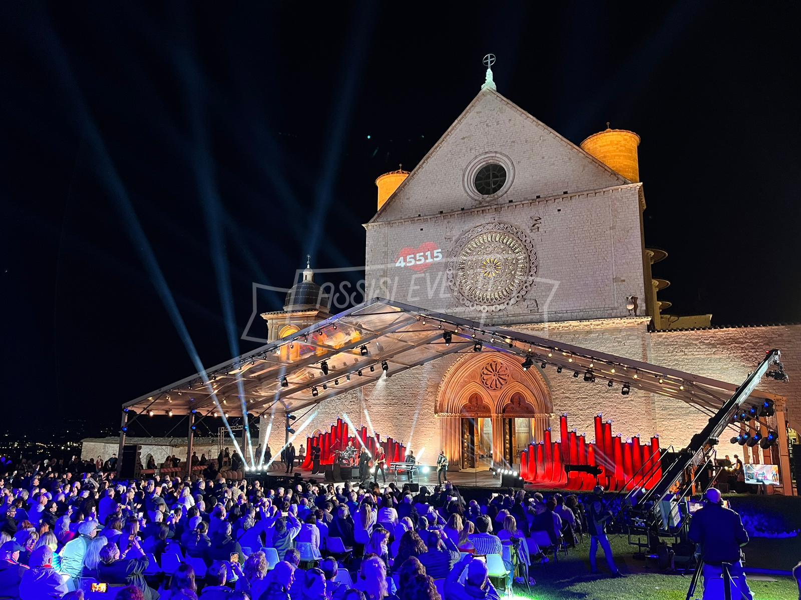 Sul palco anche l’ideatore di ‘Con il Cuore, nel nome di Francesco’, Padre Enzo Fortunato, oltre al custode del Sacro Convento Padre Marco Moroni e all’intervento del vescovo di Assisi, Gualdo Tadino, Nocera Umbra e della diocesi di Foligno monsignor Domenico Sorrentino. Presenti il sindaco di Assisi e presidente della Provincia di Perugia Stefania Proietti e l’assessore della Regione Umbria Paola Agabiti Urbani, oltre a tante personalità. Svelato anche il tradizionale foulard dello stilista Claudio Cutuli.