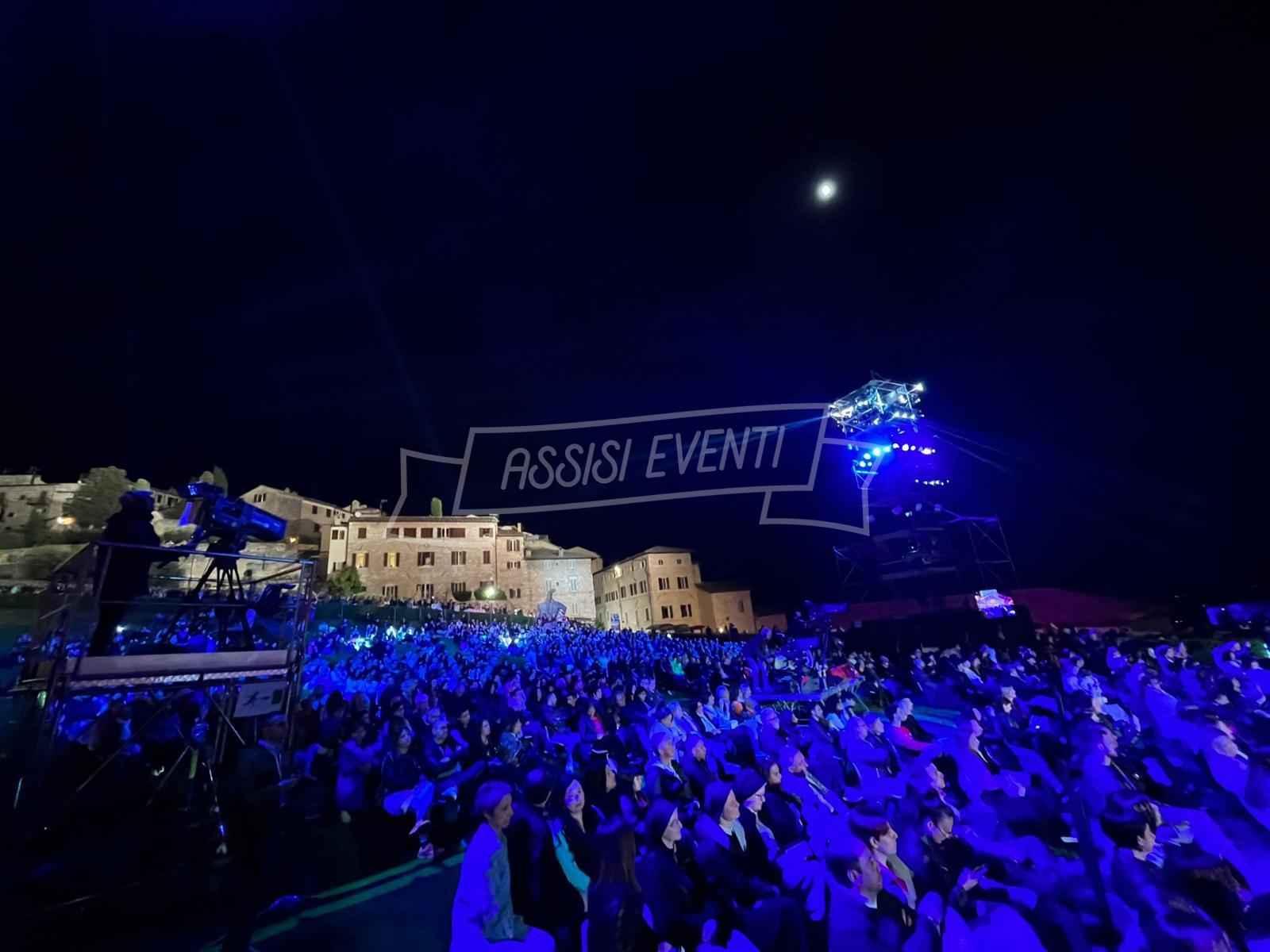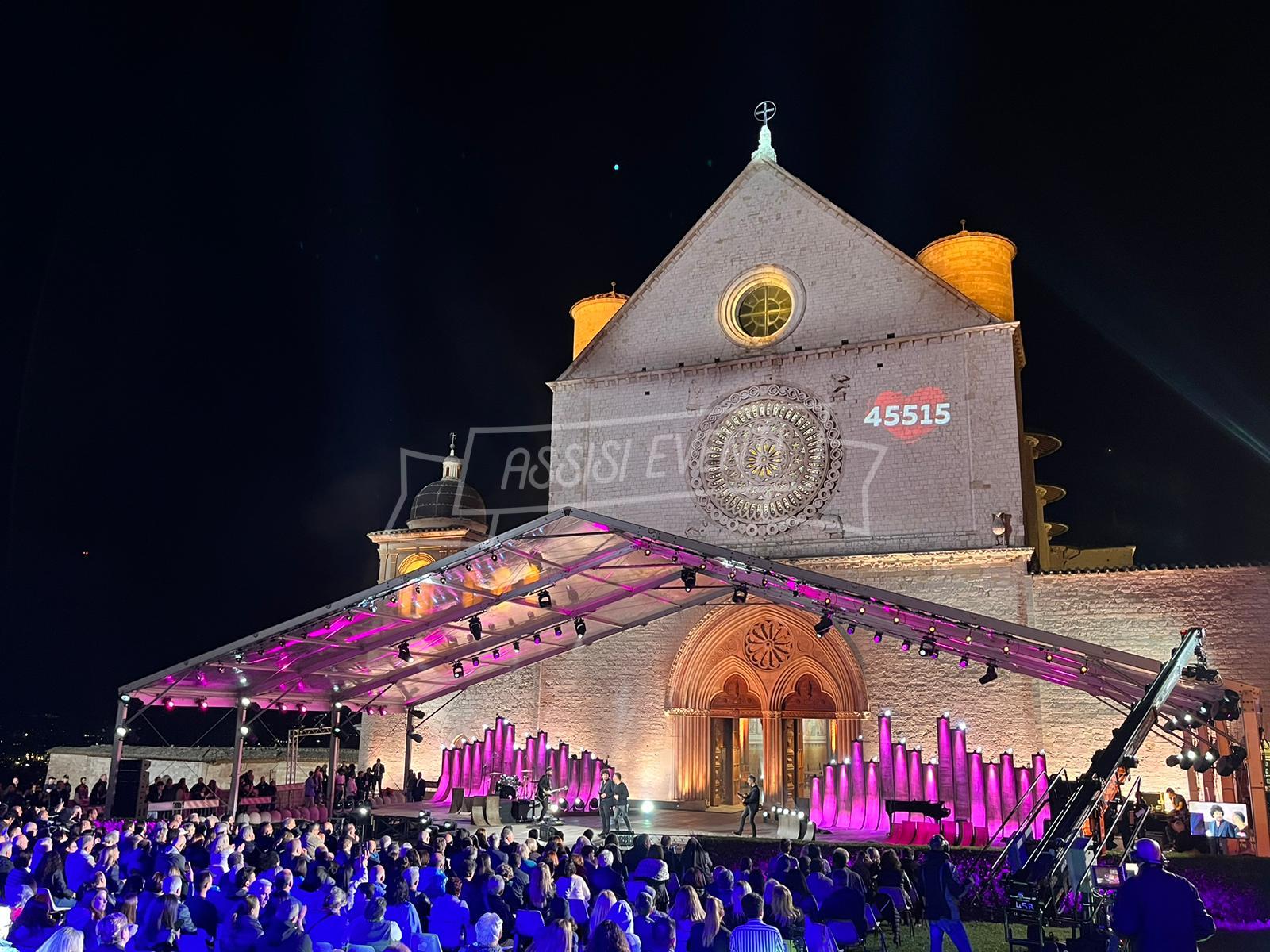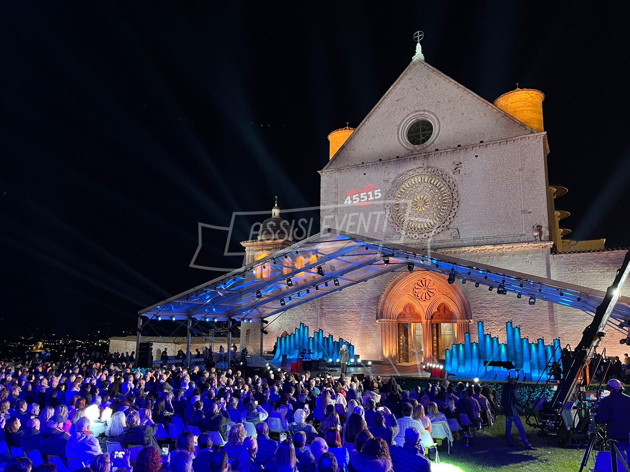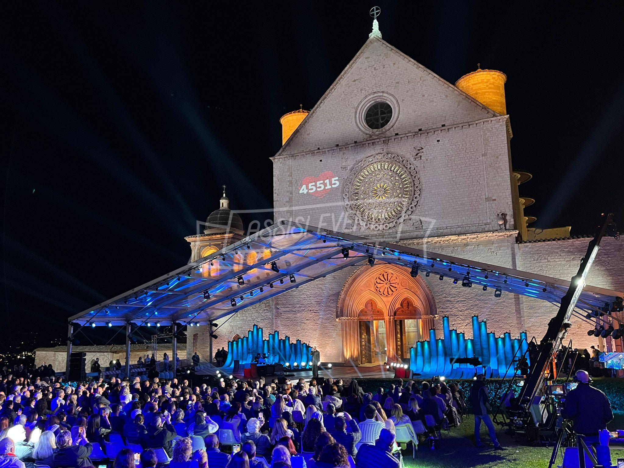 Sul palco anche l’ideatore di ‘Con il Cuore, nel nome di Francesco’, Padre Enzo Fortunato, oltre al custode del Sacro Convento Padre Marco Moroni e all’intervento del vescovo di Assisi, Gualdo Tadino, Nocera Umbra e della diocesi di Foligno monsignor Domenico Sorrentino. Presenti il sindaco di Assisi e presidente della Provincia di Perugia Stefania Proietti e l’assessore della Regione Umbria Paola Agabiti Urbani, oltre a tante personalità. Svelato anche il tradizionale foulard dello stilista Claudio Cutuli.