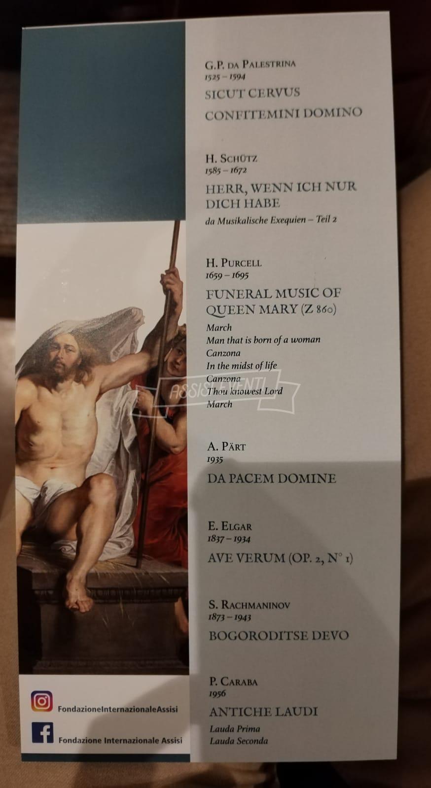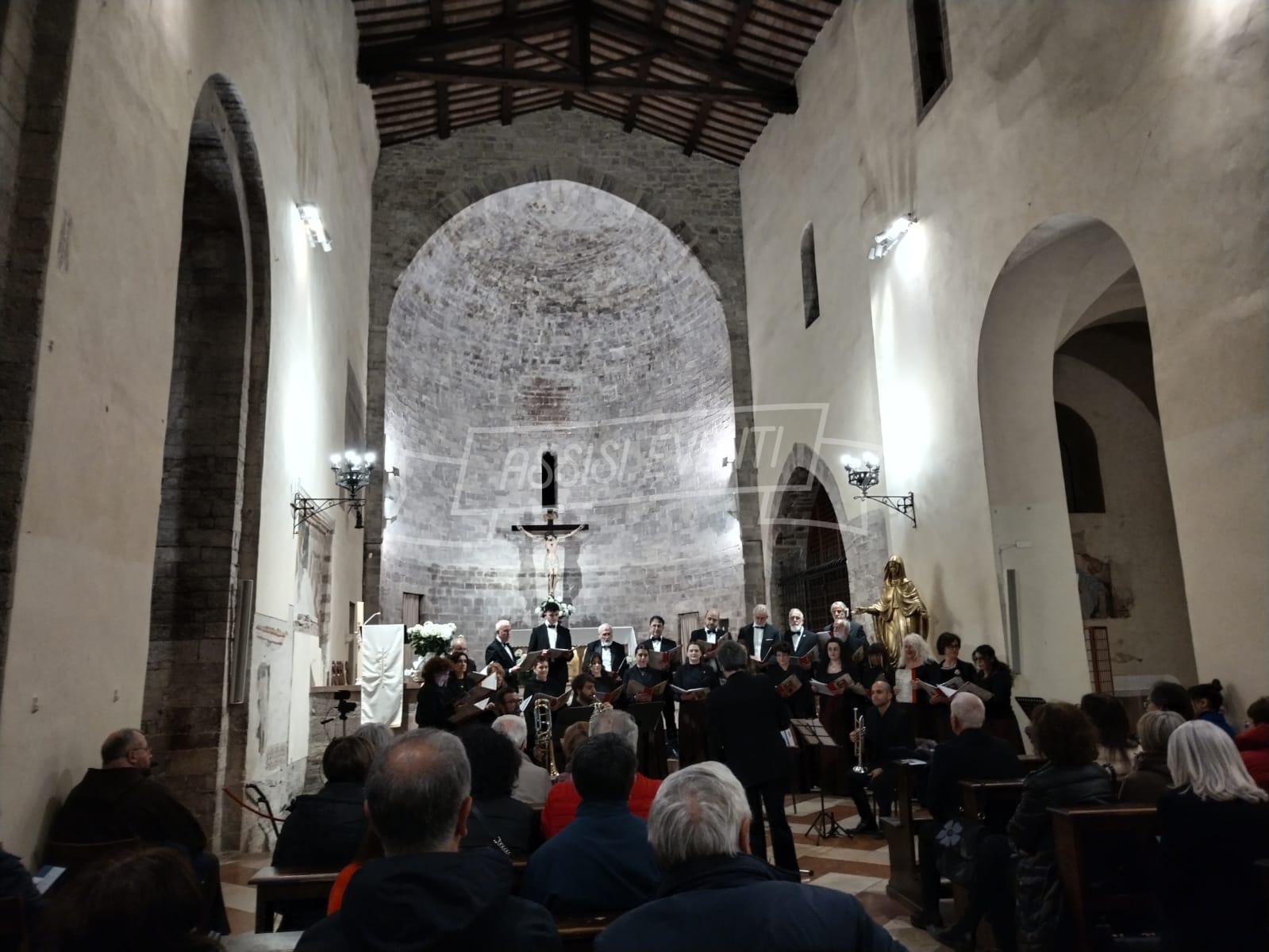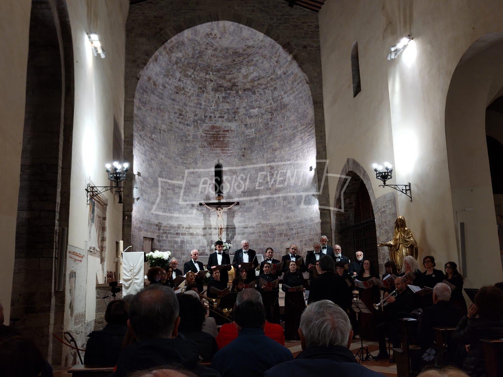 Grande successo al Santuario della Spogliazione di Assisi per il concerto “Confitemini Domino” offerto dal coro Città di Bastia. Domenica 16 aprile, il coro – diretto dal maestro Piero Caraba e accompagnato all’organo da Francesco Condello – si è esibito sulle note di Palestrina, Schütz, Purcell, Pärt, Elgar, Rachmaninov e Caraba.