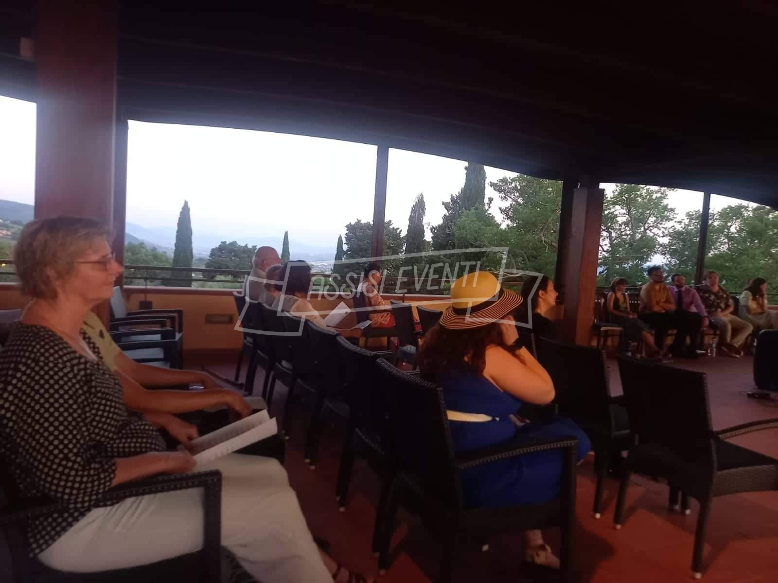 Ottimo concerto vocale quello svoltosi ieri sera nella terrazza del Grand Hotel Assisi, una cornice magnifica con un panorama mozzafiato. “Grazie infinite a Gianni Gulli, Luigi Antonioli, Francesco Galli e a tutto lo staff. Una esperienza da ripetere. Grazie sopratutto al Direttore artistico Gregory Scime’ che con grande difficoltà post pandemia è riuscito a portare in Italia tanti bravi cantori statunitensi, giovani e molto ben preparati” – recita la nota dell’associazione.