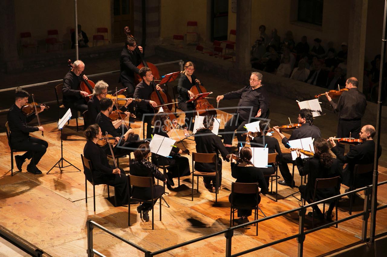 “Note d’In…Chiostro” (clicca qui per l’evento e le date in programma) è partita nel suggestivo Chiostro Sisto IV (all’interno del Sacro Convento) con l’Orchestra da Camera Fiorentina che ha eseguito le “Quattro stagioni” di Antonio Vivaldi. Tanti gli applausi nel primo appuntamento al debutto sabato 2 agosto, per una kermesse che è ormai appuntamento fisso dell’estate assisana.