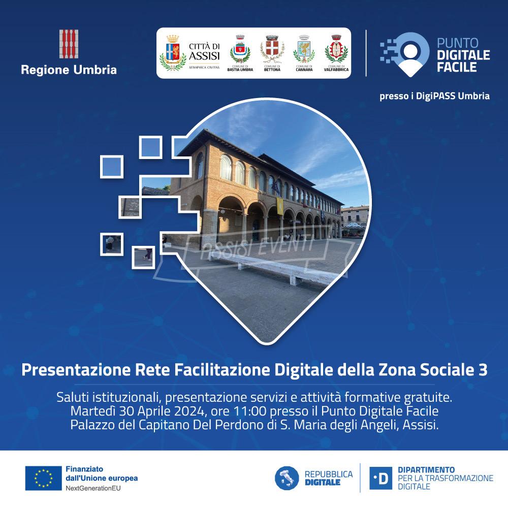 Martedì 30 aprile alle ore 11 presso il Digipass Assisi (Palazzo del Capitano del Perdono, S. Maria degli Angeli) si terrà l’evento di presentazione dei servizi e del calendario di incontri formativi gratuiti che saranno erogati presso i nuovi Punti di Facilitazione Digitale della Zona Sociale 3 dell’Umbria.