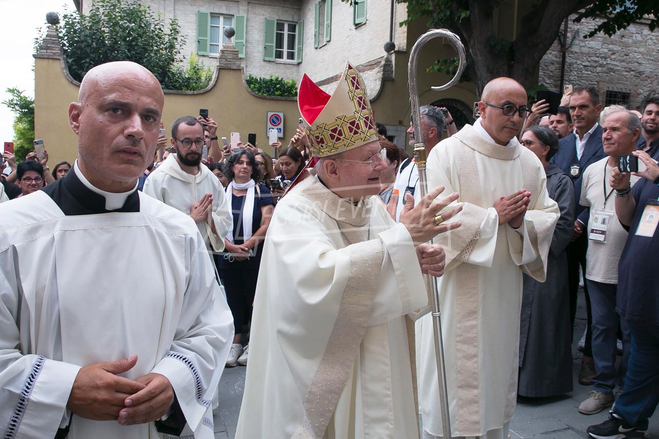 “San Carlo Acutis si è messo sulle orme dei nostri grandi santi non per ripeterne le fisionomie, giacché, come egli amava sottolineare, Dio ci vuole originali, non fotocopie, anche nella santità. Tutti chiamati a esser santi, ma ciascuno per la sua via. E la via che a lui è stata tracciata, è estremamente semplice e lineare. È la via dell’accoglienza di tutti i doni di Dio. Niente di bello, di veramente bello, che ci sia nel mondo, ci è precluso. Lo stesso Santo di Assisi in questo anno del Cantico di frate sole ce lo ricorda. Non ti fermare, nel cantico, a frate sole e sora luna, a frate vento e sora acqua, continua il Cantico portandone la melodia su tutte le realtà della vita. Vivi la vita per intero. Non ne sciupare nessuna stilla. Se ami i colori, dipingi. Se ti piace la musica, canta. Se sei bravo nello sport, prova ad essere un campione. Se hai talenti di intelligenza, non ti accontentare di passar l’esame. Se smanetti bene in internet, non aver paura di impadronirti anche di questo strumento. Tutto è di Dio e tutto viene da Dio”. Lo ha detto il vescovo delle diocesi di Assisi – Nocera Umbra – Gualdo Tadino e di Foligno, monsignor Domenico Sorrentino, durante la messa celebrata nel pomeriggio dell’8 settembre nella chiesa di Santa Maria Maggiore ad Assisi, in una cerimonia che, ha ricordato il presule, cade “nella festa della nascita di Maria. In ogni eucaristia, anche Maria è al nostro fianco. Non è eucaristia senza Maria. Carlo lo aveva capito. Maria e l’eucaristia erano per lui un unico amore, inscindibile. Vedeva Gesù con gli occhi di Maria, e amava Maria con il cuore di Gesù”.