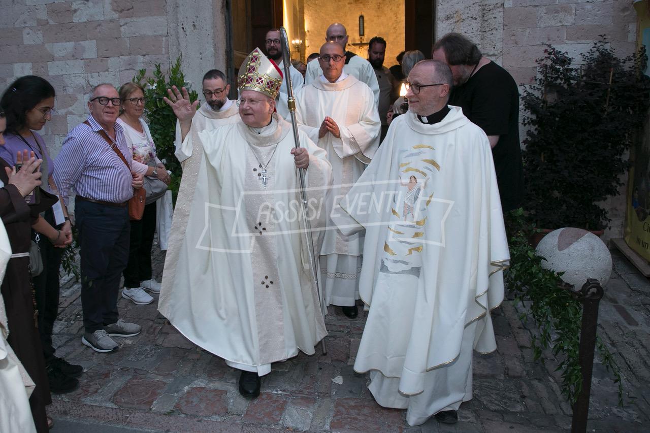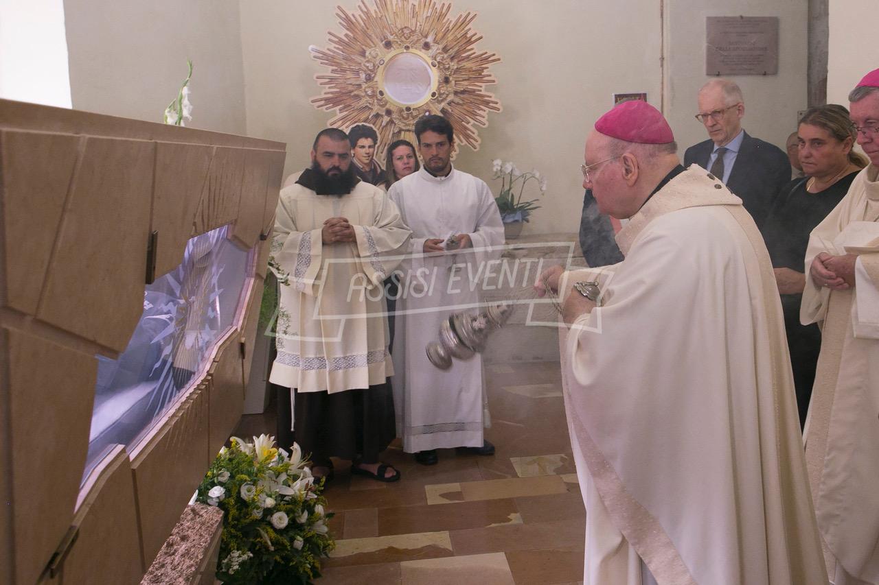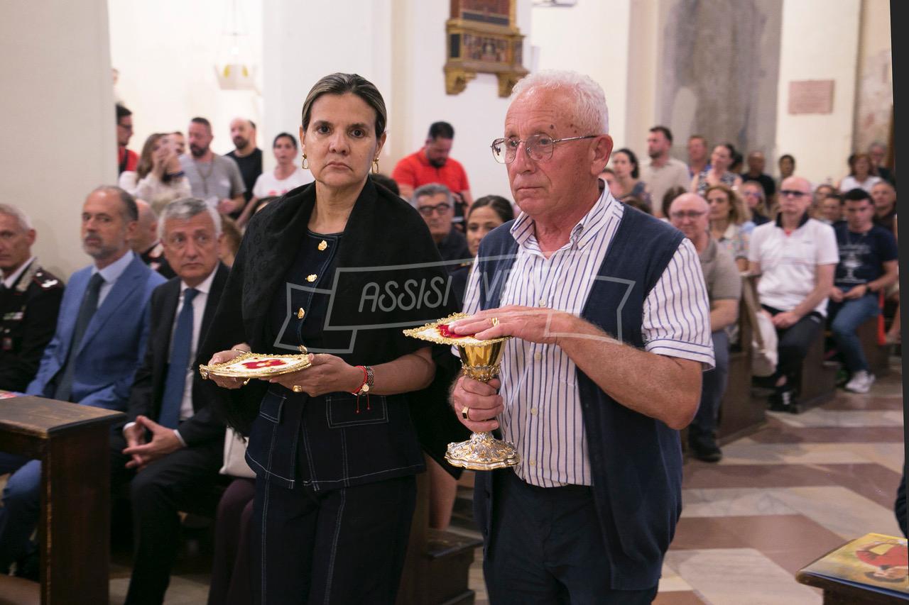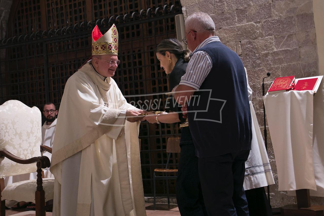 Alla cerimonia, commossi, erano presenti anche i genitori del Santo, Antonia Salzano e Andrea Acutis, il sindaco di Assisi, Valter Stoppini, la presidente della Regione, Stefania Proietti, le principali autorità civili, militari e religiose locali e regionali. Tanti i pellegrini e i fedeli presenti, una folla festosa che per tutta la giornata ha animato e colorato la piazza di Assisi dove sorge il complesso del Santuario della Spogliazione. “Ieri a piazza San Pietro, insieme con Pier Giorgio Frassati, Carlo si elevava nel firmamento della Chiesa e della società come una stella. C’è una diffusa tendenza, nella nostra società dell’immagine, una tendenza che forse è visibile soprattutto nei giovani, a cercare una ‘star’ con cui identificarci. Sarà quel cantante, quell’attore, quel campione, quella personalità. Proviamo se non a ribaltare, almeno ad integrare, la nostra volta stellare. Cominciamo a fissare le `star’ che non tramontano. Le stelle accese da Dio nel nostro firmamento, i santi. Carlo è stato voluto così, come una stella di intensa luce, ma di forma semplice; Carlo è di poche parole, ma comprensibili e che toccano il cuore. È stato messo accanto a Francesco e Chiara, perché ciascuno, levando gli occhi al cielo, potesse trovare in questo trio quello di cui ha bisogno. (…) Ma – ha messo in guardia il vescovo – occorre stare attenti ai moti del suo sguardo, che ti trascinano subito verso Gesù. Jesus Christ super star. È solo Gesù ‘la luce del mondo, la stella che non tramonta. Francesco e Carlo lo dicono insieme. Bisogna che l’immagine programma che accoglie i pellegrini all’ingresso di questo santuario non sfugga. C’è Francesco, c’è Carlo, ma sono ai lati. Mani, sguardo, cuore, sono interamente per Gesù. Lavorano per lui. Sono gli operai del suo cantiere: al Santo Padre, che ho incontrato oggi, ho detto che non vedo l’ora di invitarlo a vedere questa grande opera, il disegno mirabile di un Santuario che parte da così lontano e guarda così lontano, al terzo millennio della chiesa che è e deve essere il millennio di Gesù. E Carlo amplifica questo desiderio e con Francesco ambedue producono e irradiano gioia”.