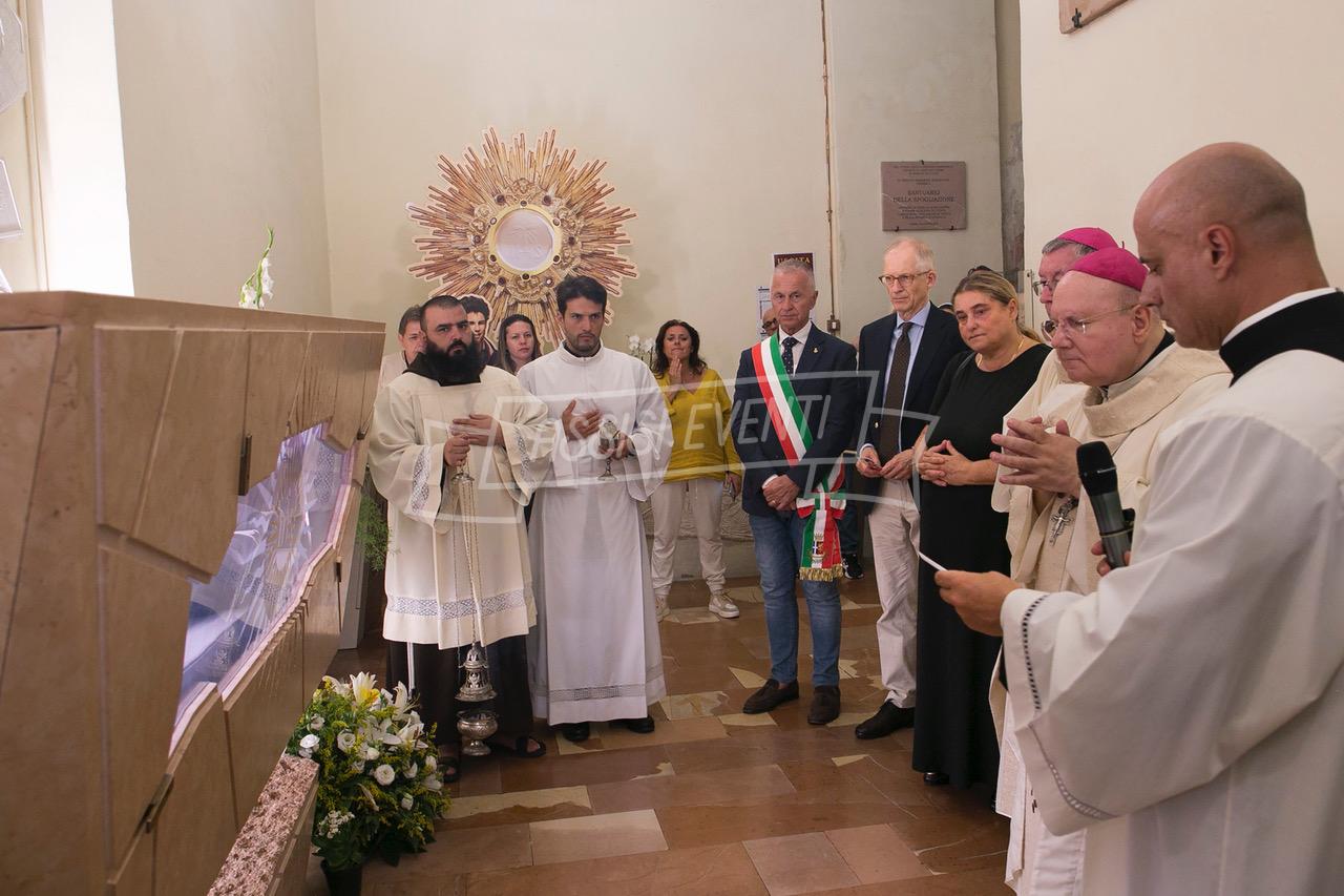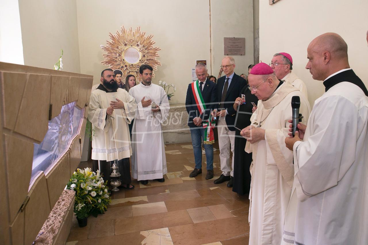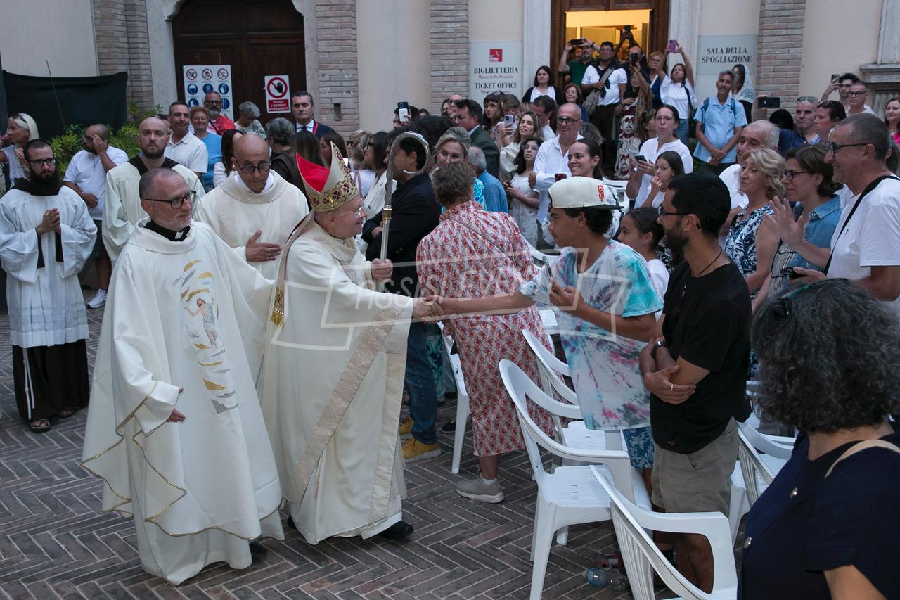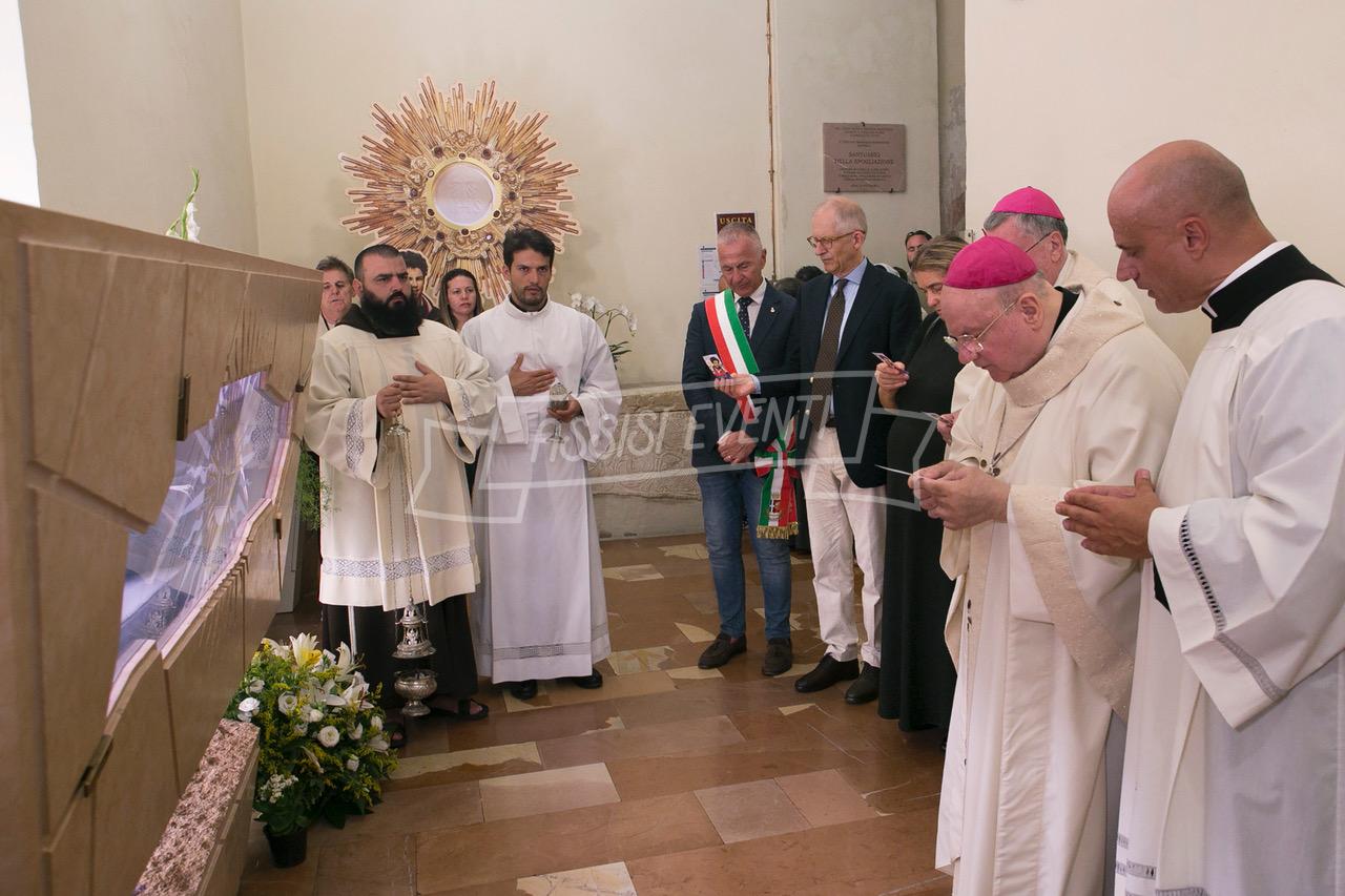 Alla cerimonia, commossi, erano presenti anche i genitori del Santo, Antonia Salzano e Andrea Acutis, il sindaco di Assisi, Valter Stoppini, la presidente della Regione, Stefania Proietti, le principali autorità civili, militari e religiose locali e regionali. Tanti i pellegrini e i fedeli presenti, una folla festosa che per tutta la giornata ha animato e colorato la piazza di Assisi dove sorge il complesso del Santuario della Spogliazione. “Ieri a piazza San Pietro, insieme con Pier Giorgio Frassati, Carlo si elevava nel firmamento della Chiesa e della società come una stella. C’è una diffusa tendenza, nella nostra società dell’immagine, una tendenza che forse è visibile soprattutto nei giovani, a cercare una ‘star’ con cui identificarci. Sarà quel cantante, quell’attore, quel campione, quella personalità. Proviamo se non a ribaltare, almeno ad integrare, la nostra volta stellare. Cominciamo a fissare le `star’ che non tramontano. Le stelle accese da Dio nel nostro firmamento, i santi. Carlo è stato voluto così, come una stella di intensa luce, ma di forma semplice; Carlo è di poche parole, ma comprensibili e che toccano il cuore. È stato messo accanto a Francesco e Chiara, perché ciascuno, levando gli occhi al cielo, potesse trovare in questo trio quello di cui ha bisogno. (…) Ma – ha messo in guardia il vescovo – occorre stare attenti ai moti del suo sguardo, che ti trascinano subito verso Gesù. Jesus Christ super star. È solo Gesù ‘la luce del mondo, la stella che non tramonta. Francesco e Carlo lo dicono insieme. Bisogna che l’immagine programma che accoglie i pellegrini all’ingresso di questo santuario non sfugga. C’è Francesco, c’è Carlo, ma sono ai lati. Mani, sguardo, cuore, sono interamente per Gesù. Lavorano per lui. Sono gli operai del suo cantiere: al Santo Padre, che ho incontrato oggi, ho detto che non vedo l’ora di invitarlo a vedere questa grande opera, il disegno mirabile di un Santuario che parte da così lontano e guarda così lontano, al terzo millennio della chiesa che è e deve essere il millennio di Gesù. E Carlo amplifica questo desiderio e con Francesco ambedue producono e irradiano gioia”.
