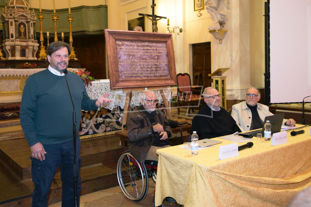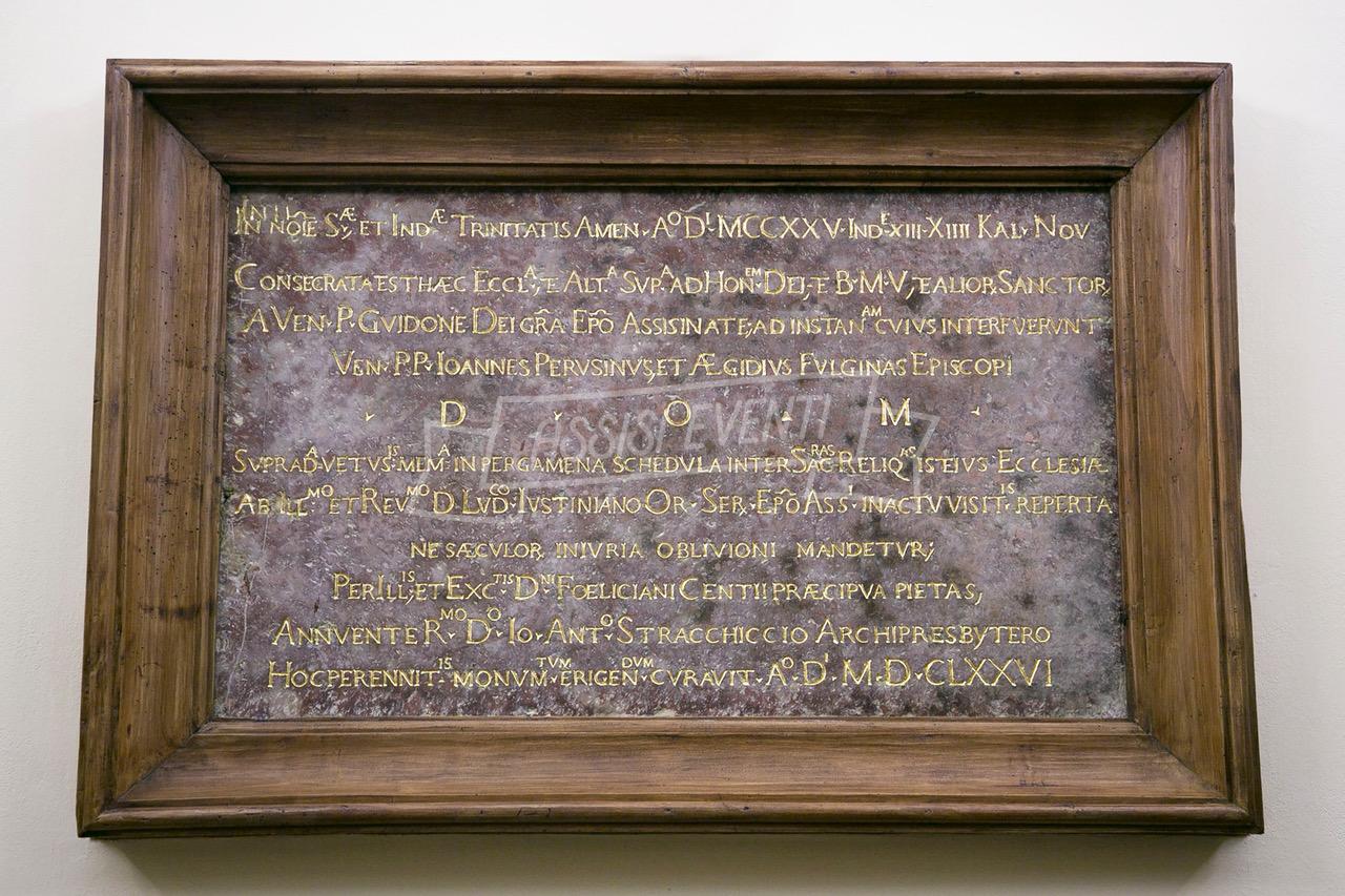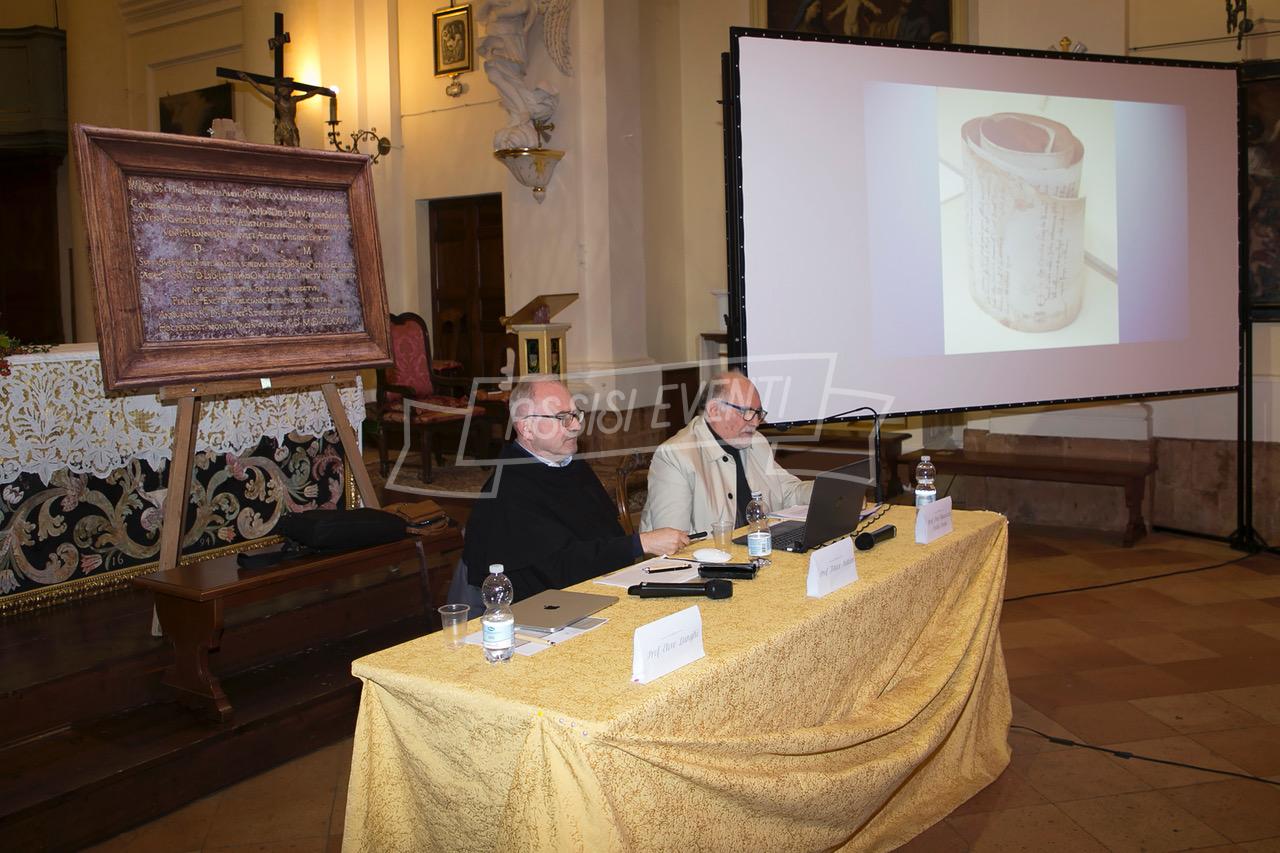L’epigrafe, recentemente restaurata e conservata nella sacrestia, è stata mostrata ai partecipanti al termine dell’incontro, suscitando notevole interesse. La ricorrenza dell’ottavo centenario della riconsacrazione, coincidente con l’ottavo centenario del Cantico di frate Sole, ha reso l’evento particolarmente significativo.