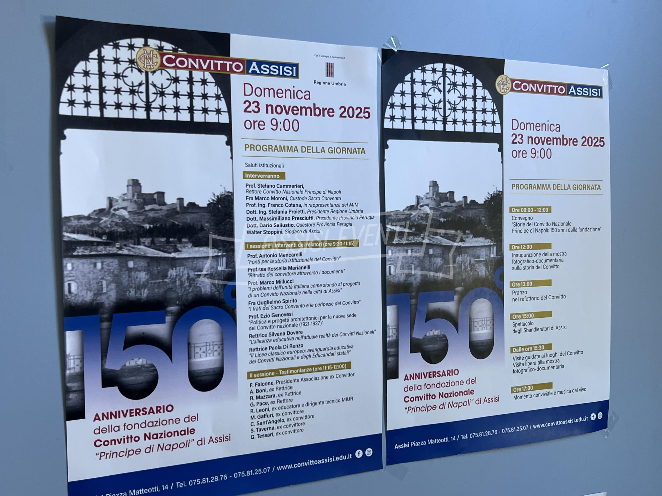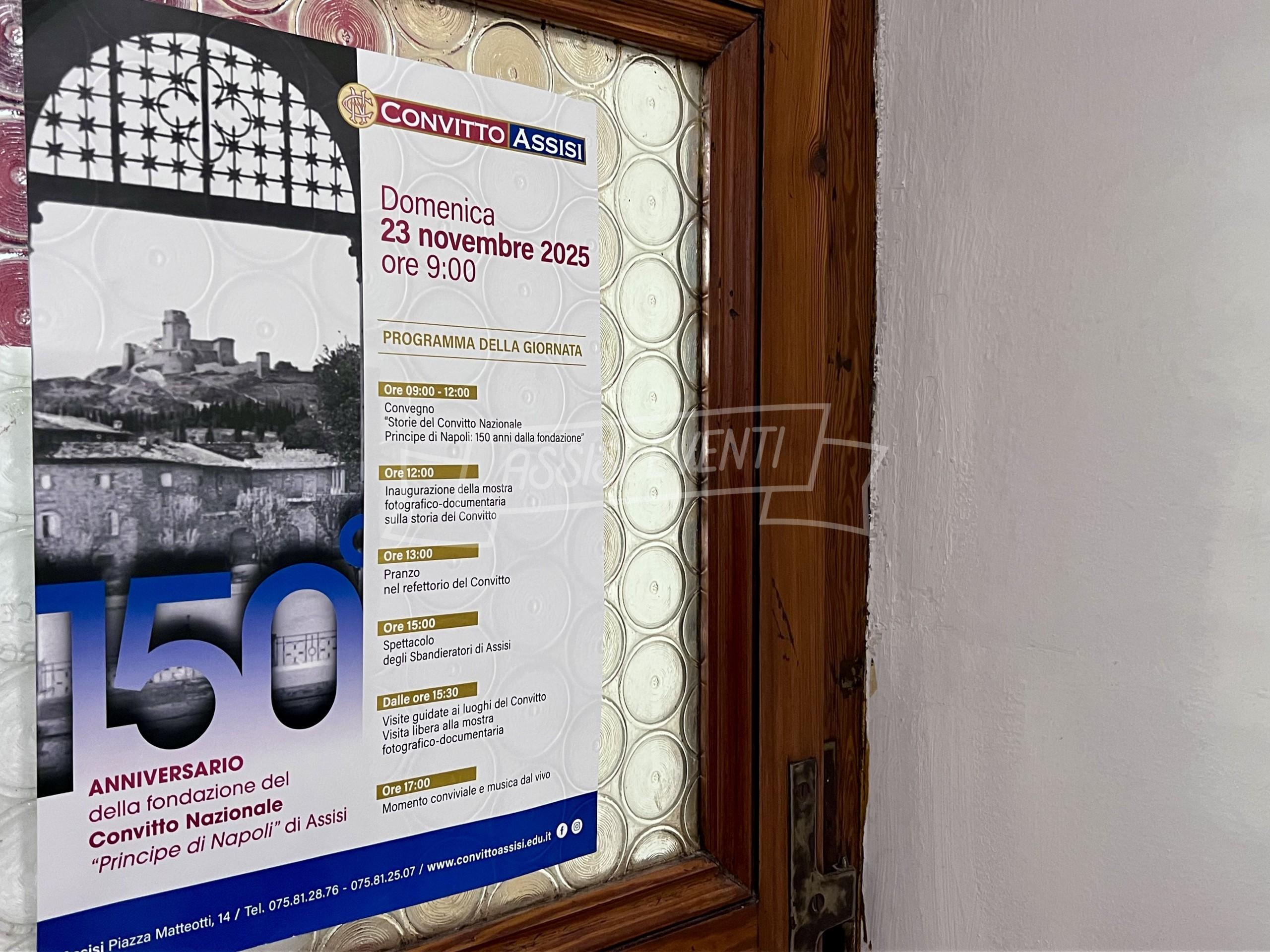 Nel pomeriggio, alle 15, lo spettacolo degli Sbandieratori di Assisi apre la sessione delle visite guidate ai luoghi del Convitto, affiancate dalla possibilità di accedere liberamente alla mostra fotografico-documentaria. Alle 17 previsto un momento conviviale con musica dal vivo, che concluderà ufficialmente la giornata celebrativa.