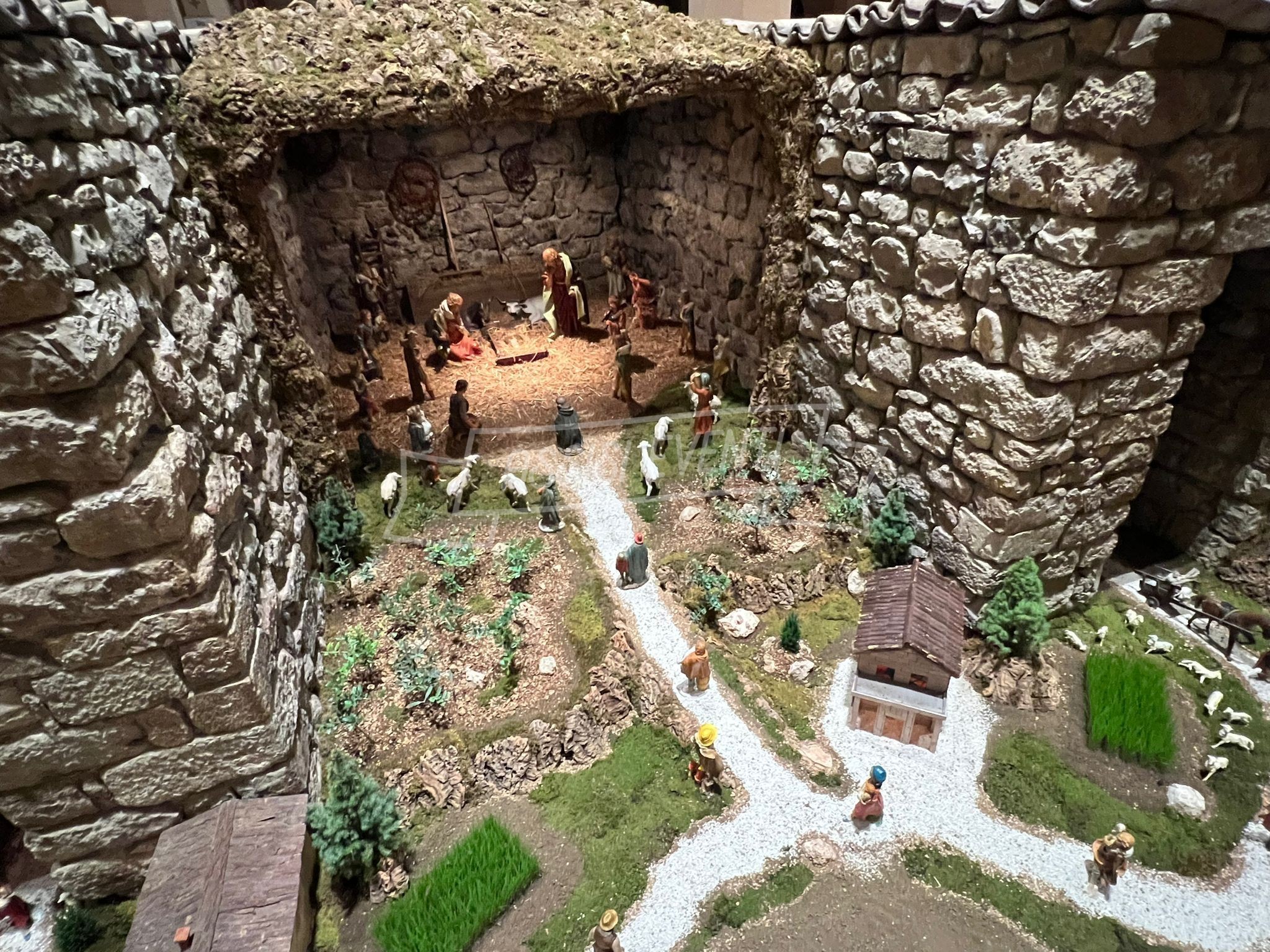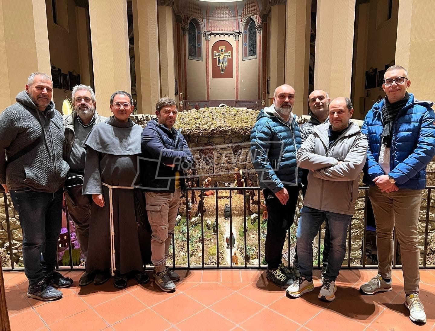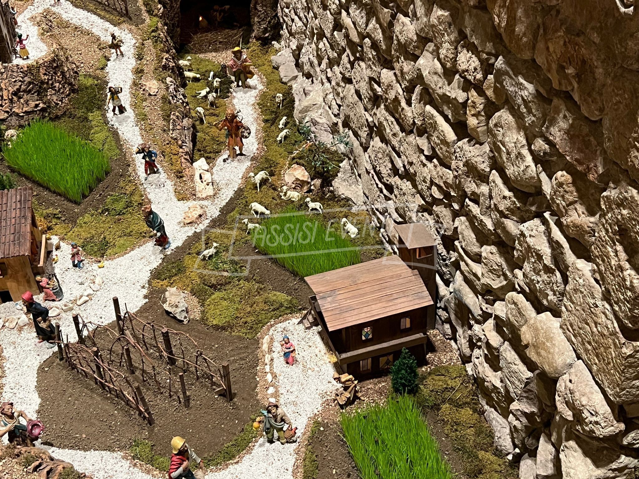Un presepio realizzato grazie alla maestria e alla dedizione dei volontari della parrocchia. Anno dopo anno prendono forma colline, strade, campi, ruscelli che ricordano i paesaggi della campagna umbra. Le pietre dell’umile dimora, che accolse Francesco e i suoi primi compagni, fanno da sfondo e rendono ancora più suggestiva la rappresentazione della Natività di Gesù che, proprio il Poverello, ha voluto far rivivere nel primo presepio realizzato a Greccio nel 1223.