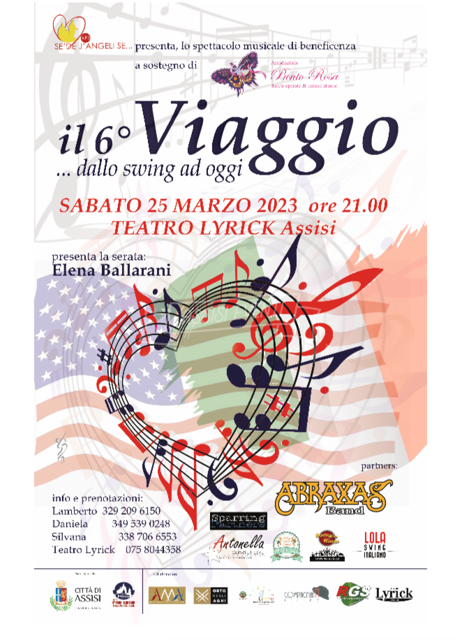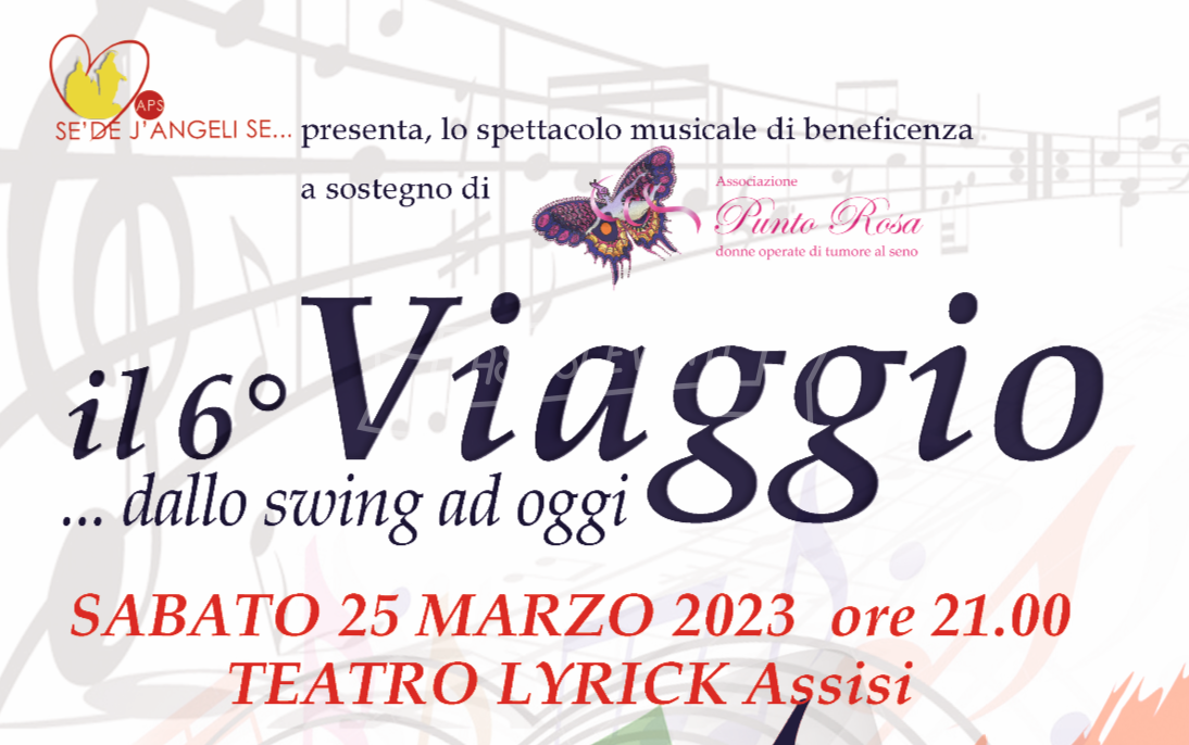 “Il Viaggio” è uno spettacolo musicale giunto quest’anno alla 6ª edizione, che viene presentato al Teatro Lyrick di Assisi e promosso dall’Associazione “Se’ de J’Angeli se….” APS di Santa Maria degli Angeli – Assisi, sotto la Direzione Artistica di Lamberto Bisogno. Le peculiarità che caratterizzano “Il Viaggio” sono la solidarietà (per ogni edizione il ricavato è destinato ad una o più associazioni benefiche che si occupano di progetti sociali) e “artisti a chilometro zero” (tutti gli artisti, circa 30/40 per ogni edizione, provengono dal ricco tessuto artistico perugino), un modo per valorizzare tanti bravi musicisti, cantanti, ballerini che altrimenti non avrebbero la meritata visibilità. Ogni anno lo spettacolo assume connotati e temi diversi con proposte di brani e di autori mai uguali, con arrangiamenti originali e tutto rigorosamente live, con la preziosa collaborazione dell’Abraxas Band.