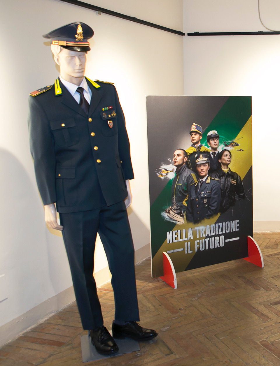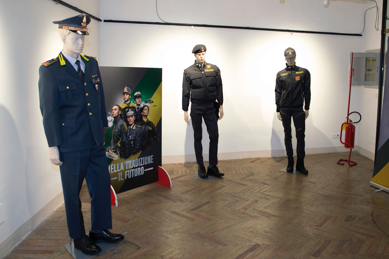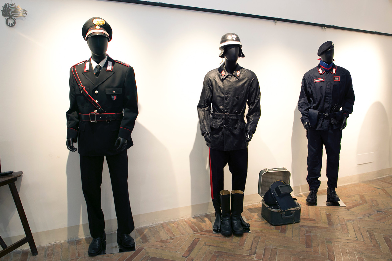 Su manichini elegantemente disposti le divise diventano testimonianze tangibili di dedizione e servizio: le opere sartoriali raccontano la cura e la tradizione di emblemi che, nel tempo, hanno saputo rinnovarsi senza perdere la propria identità. Accanto ai capi d’abbigliamento elmetti, caschi e stivali che restituiscono l’immagine di reparti sempre pronti a intervenire, anche nei momenti più difficili della storia del Paese. Oggetti che parlano dei sacrifici e del coraggio di uomini e donne che hanno fatto del dovere una scelta quotidiana di servizio alla collettività. La mostra si pone quindi come un dialogo visivo tra passato e presente, un tributo al valore delle Forze dell’Ordine e al legame profondo che le unisce alla cittadinanza, un racconto di identità e memoria condivisa.