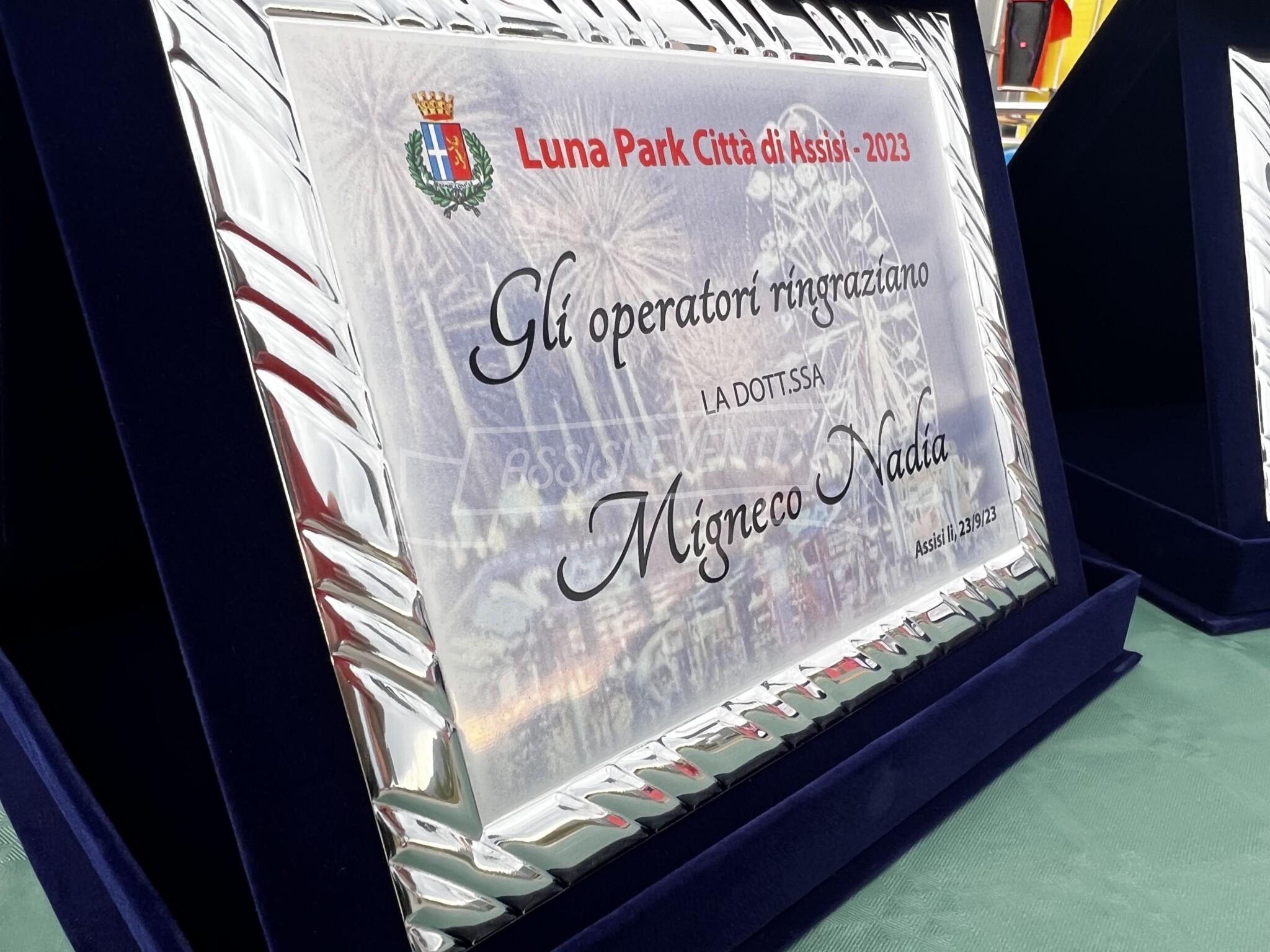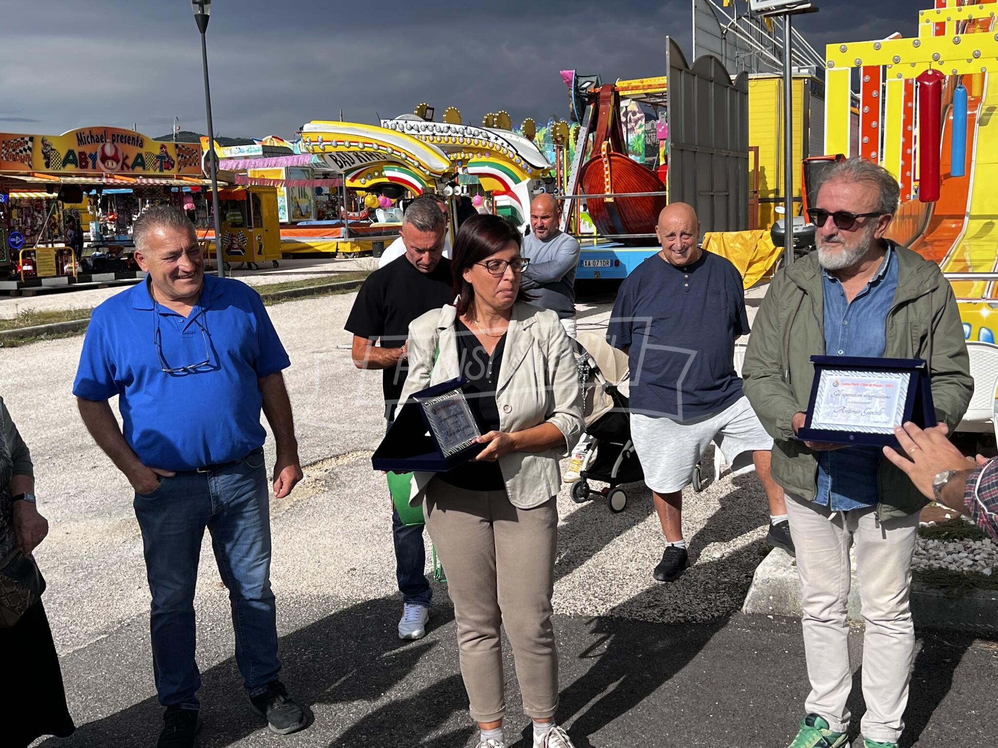 Luna Park Assisi 2023 al via: gli operatori delle giostre omaggiano dirigenti comunali e amministrazione (foto)