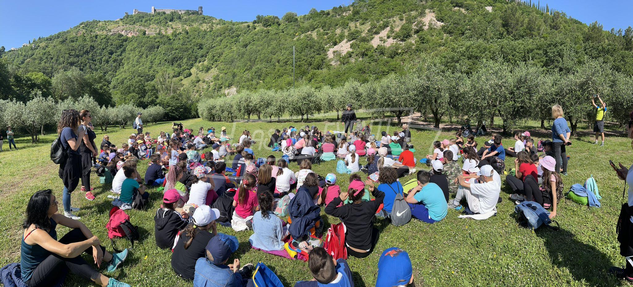 “Noi…come un albero” si è messo di nuovo in cammino. Come conclusione del progetto di plesso, quest’anno i bambini della Scuola Primaria di Rivotorto di Assisi sono stati coinvolti in una bellissima esperienza ludico-sensoriale grazie alla professionalità della ‘camminattrice’ Loretta Bonamente. Centoquaranta piccoli esploratori, accompagnati dalle insegnanti e con la guida esperta di Loretta e Mirko, hanno potuto fruire delle meraviglie del Bosco di San Francesco-FAI tra esperienze multisensoriali e storie piene di magia. Ascoltare le avventure di Stephan, il ragazzo che parlava agli alberi, respirare i suoni della Natura, percorrere il “Terzo Paradiso”, affidarsi ai compagni per una passeggiata al “buio”, questo e molto altro è ciò che rimarrà nei cuori dei bambini.