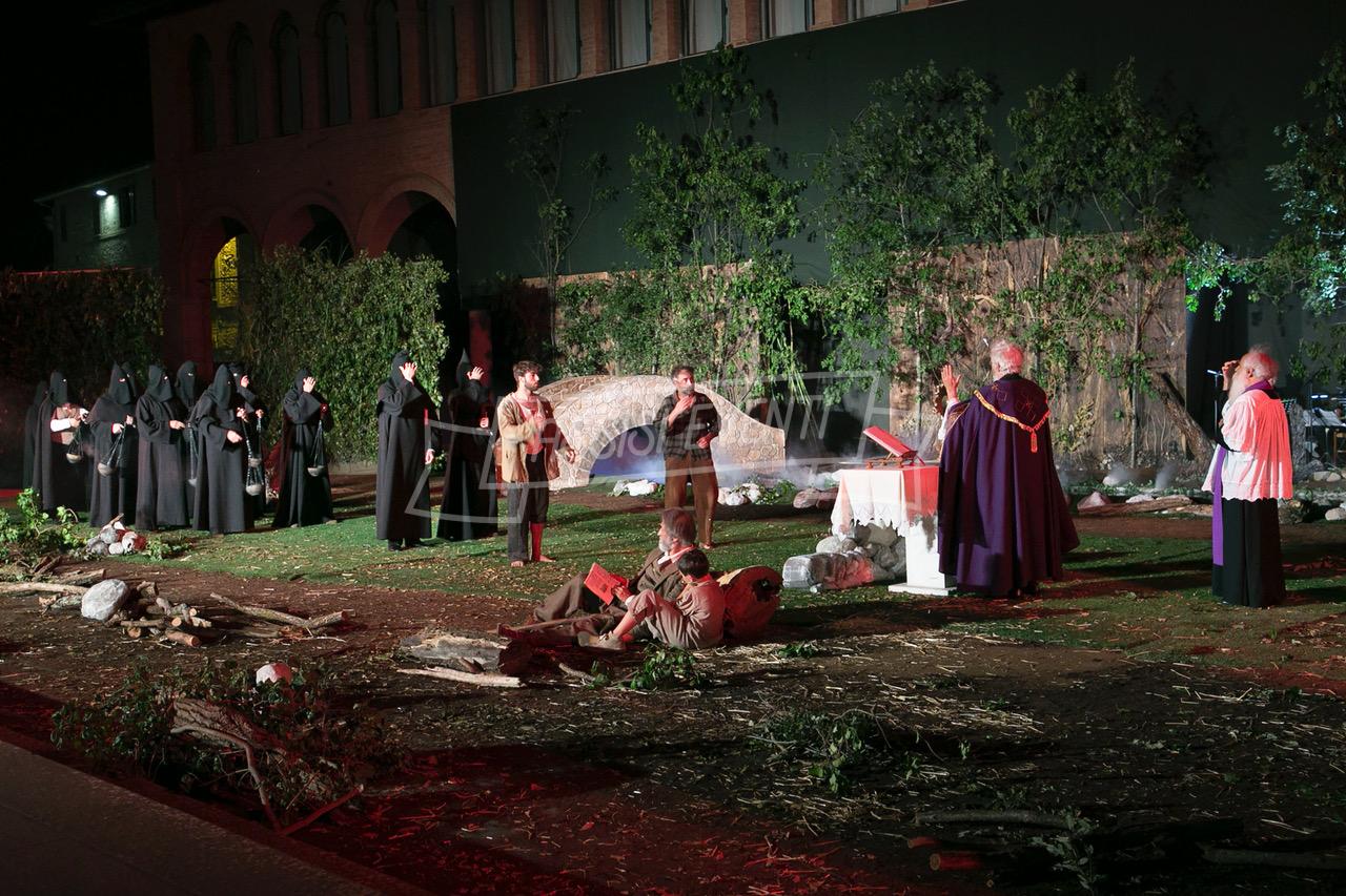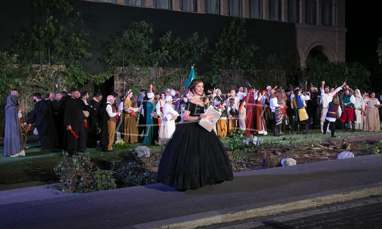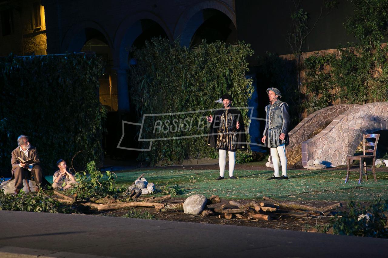 È andato in scena martedì 20 giugno lo spettacolo del Rione Ponte Rosso dal titolo “Le Novelle del Tescio”. La rappresentazione teatrale ambientata nel secolo XIX ha visto protagoniste le rive del Tescio dove “scorrono gli impeti della storia, quella scritta con la ‘S’ maiuscola; anche da noi scorrono gli impeti del popolo italiano. Un viaggio tra le storie delle nostre terre e le leggende dei nostri luoghi”. La novelle riprese dalla sfilate sono ambientate in epoche storiche differenti: Medioevo, Seicento e Ottocento. Nella prima si è parlato di spiritualità, nella seconda del territorio assisano e nella terza delle varie leggende.