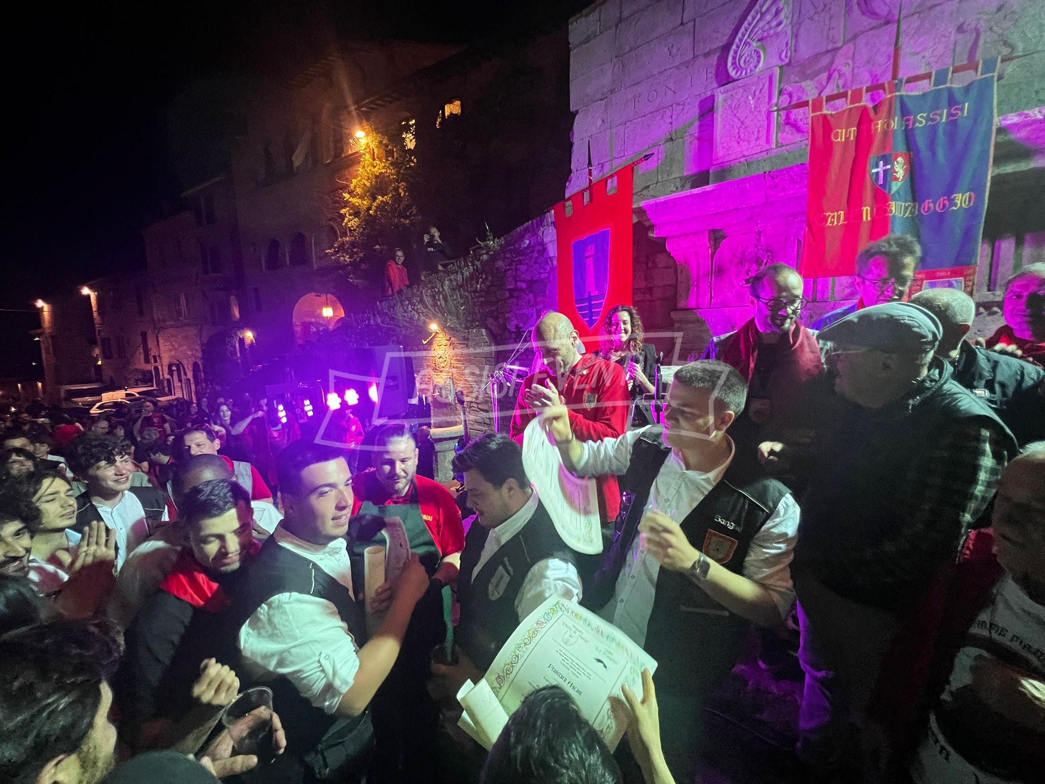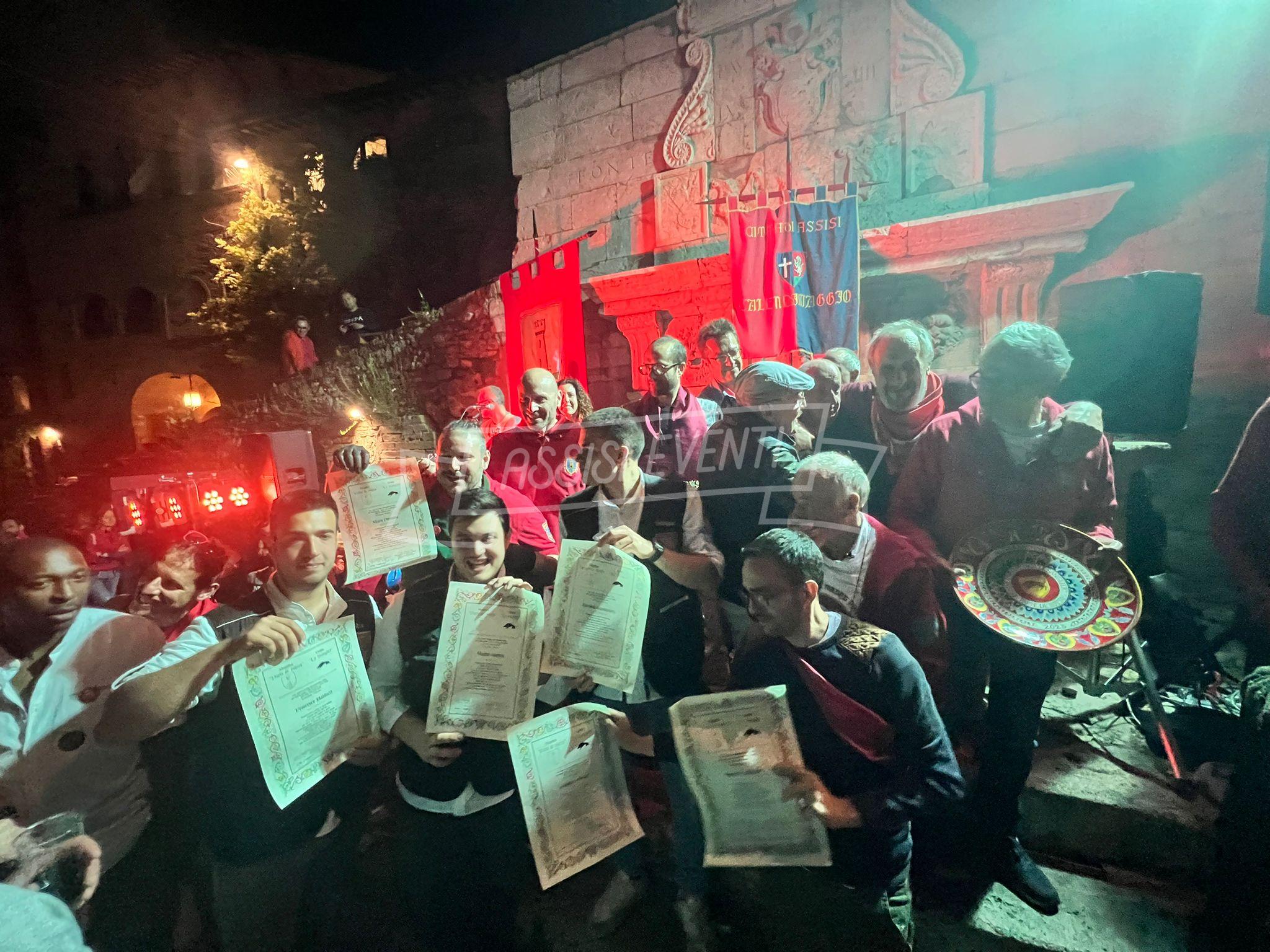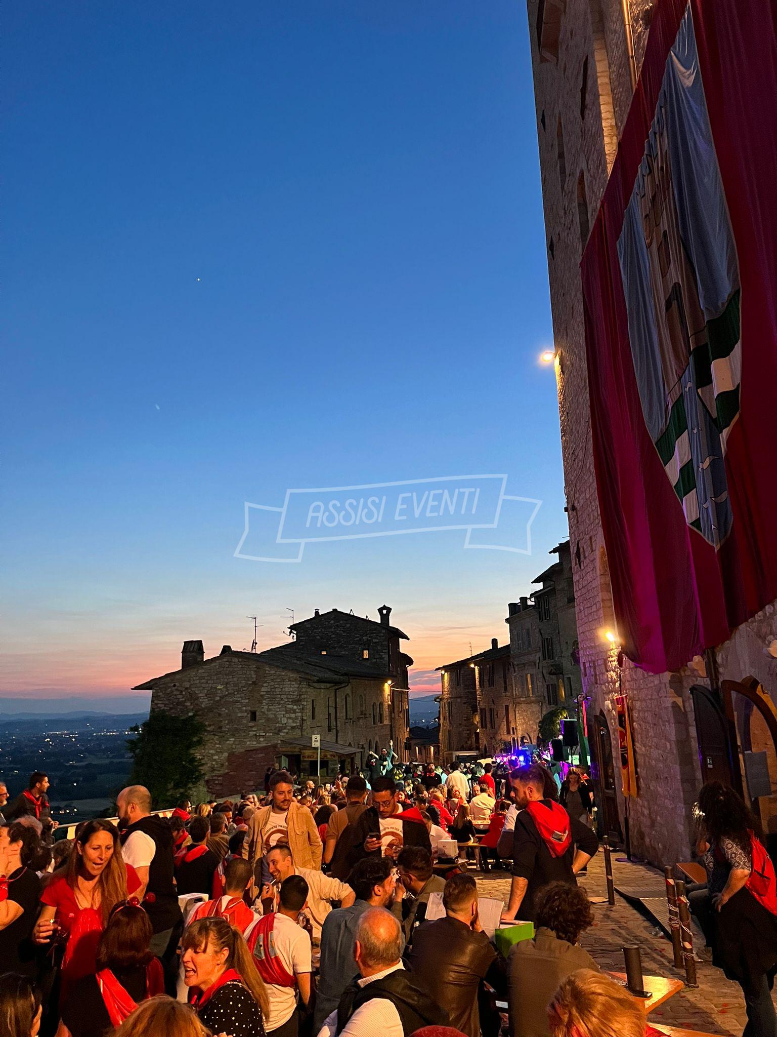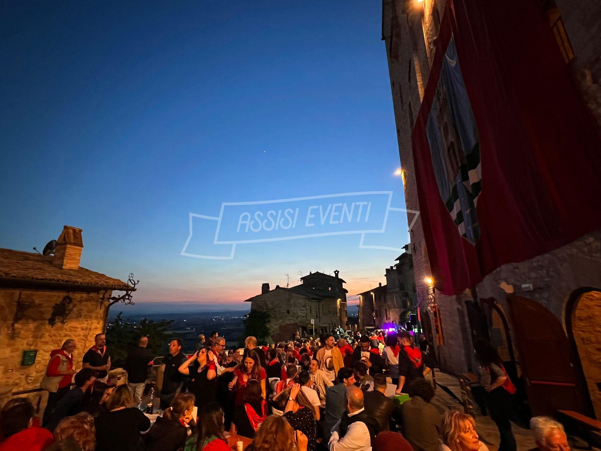 (S.B.) Grande festa alla Cena della Vittoria della Magnifica Parte de Sotto vincitrice del Calendimaggio 2023. Oltre 500 i Partaioli presenti alla Cena della Vittoria dei ‘rossi’ in via Fontebella ad Assisi, sabato 27 maggio dalle 20.30. Un’occasione per la Parte de Sotto per celebrare la vittoria nella sessantottesima edizione del Calendimaggio di Assisi 2023, manifestazione che ha ottenuto anche il patrocinio del Senato della Repubblica e della Camera dei Deputati, oltre al sostegno, sia alle Parti che all’Ente, della Fondazione Perugia.