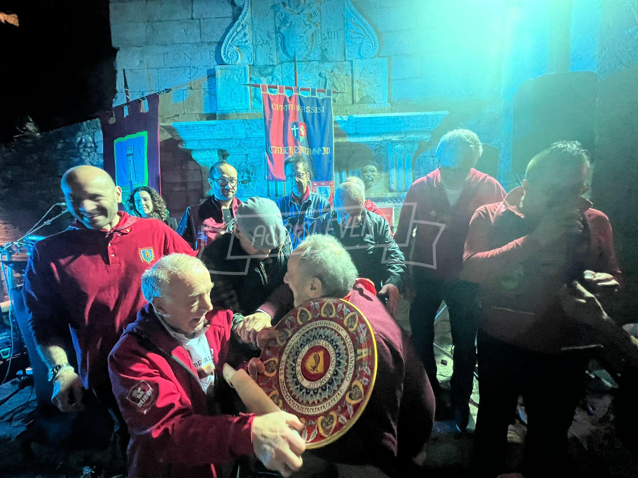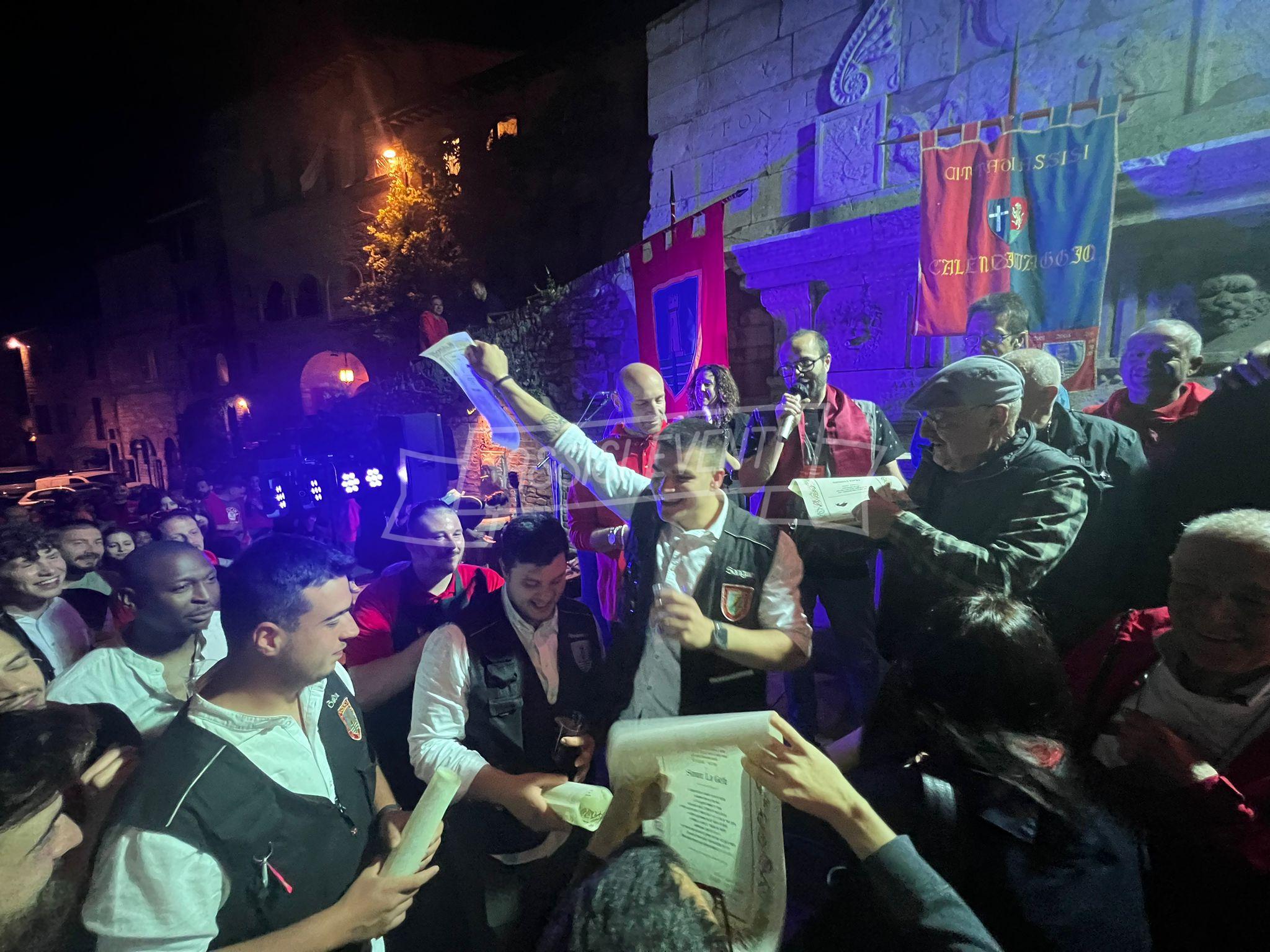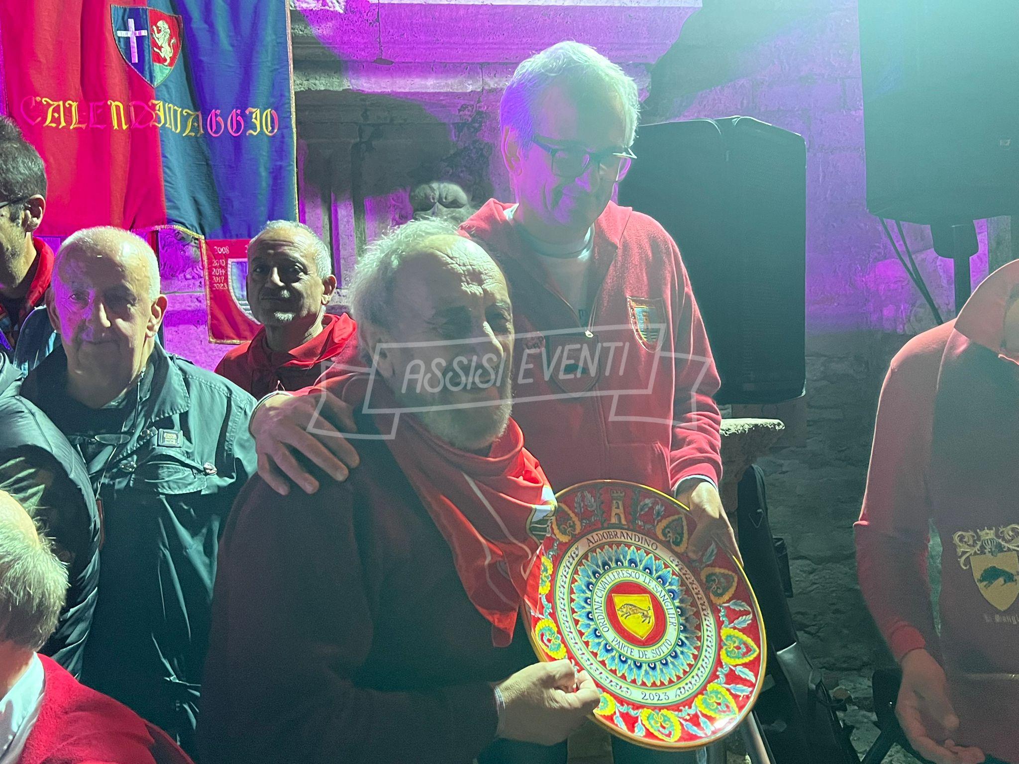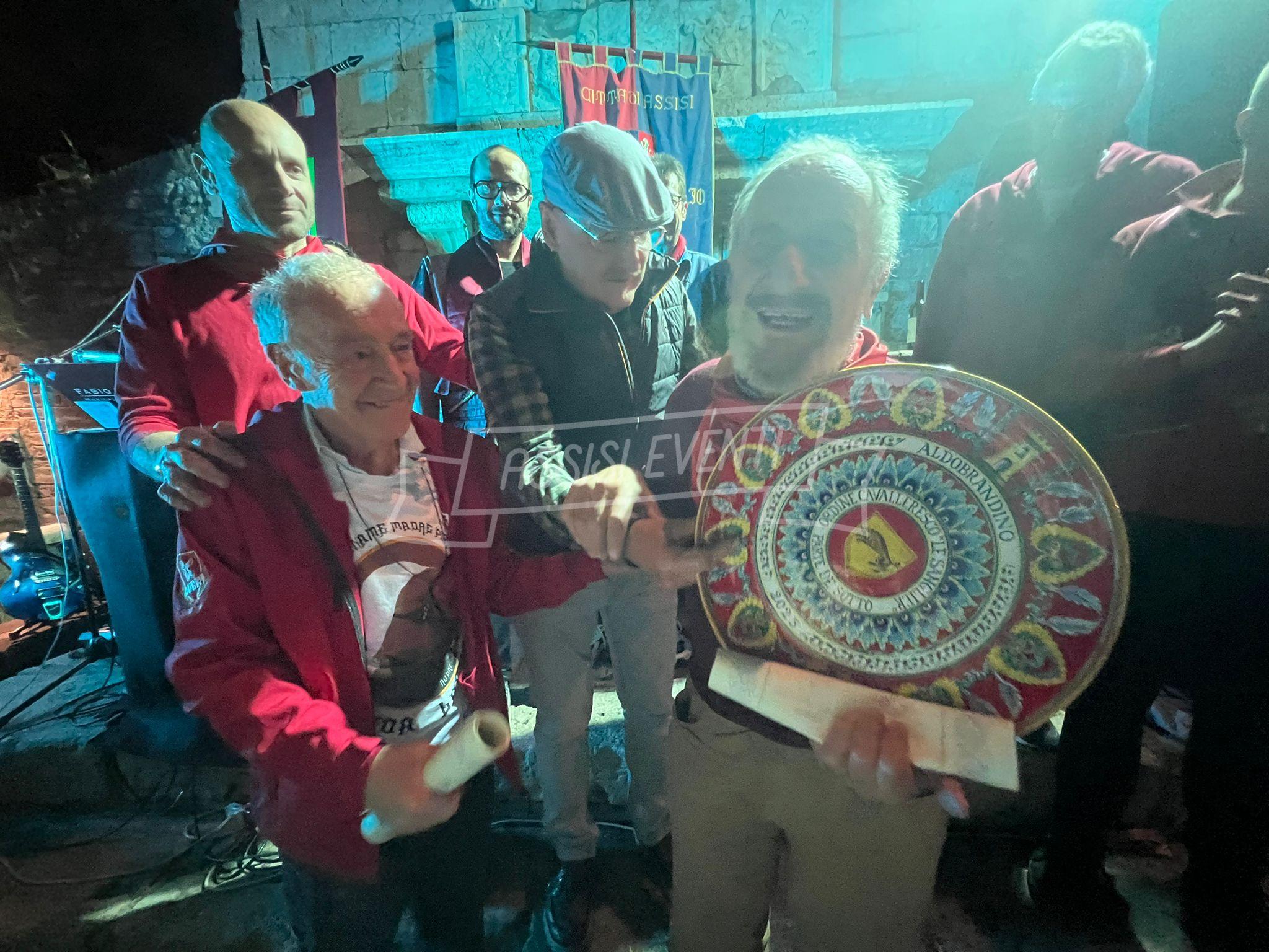 Durante la Cena della Vittoria, canti, balli, musica, e anche la consegna del tradizionale ‘Premio Aldobrandino’ da parte del ‘Sovrano Ordine Le Sanglier’. Il ‘Premio Aldobrandino’ 2023, è stato consegnato ad Ennio Dionigi, per i più in arte “Paperino”, storico Partaiolo della Magnifica Parte de Sotto, fra i più anziani della Parte. ’XVII Premio Aldobrandino’ ad Ennio Dionigi, tornato attivamente a partecipare al Calendimaggio e che maggiormente si è distinto nell’ultima edizione 2023 dei “rossi”.