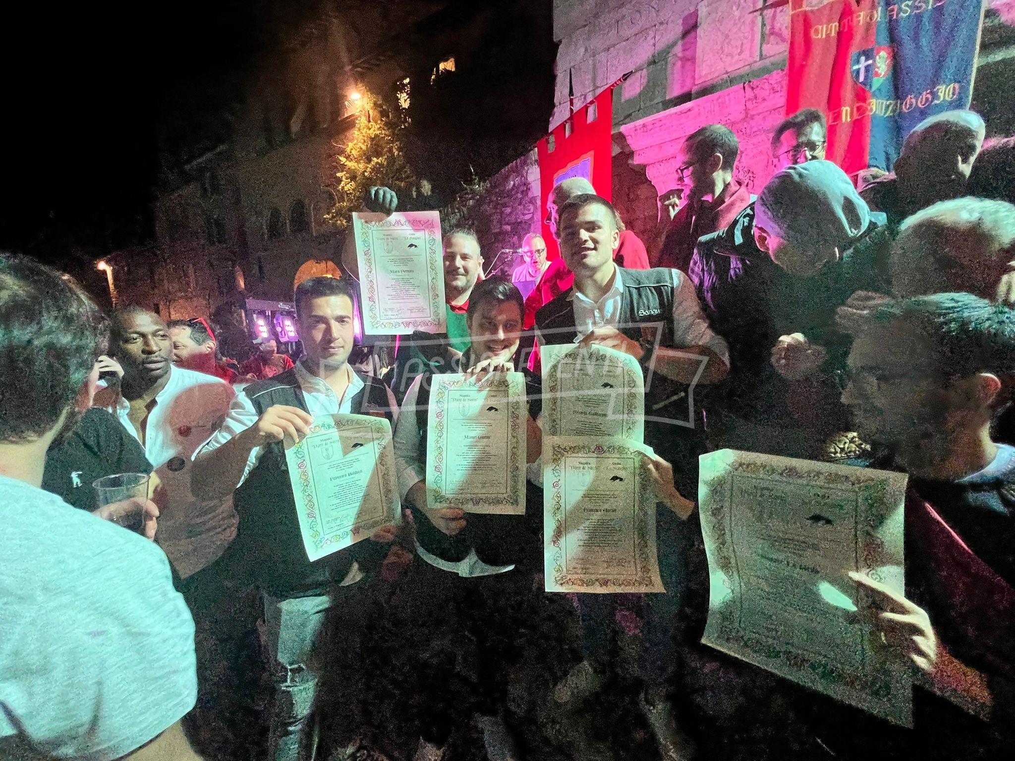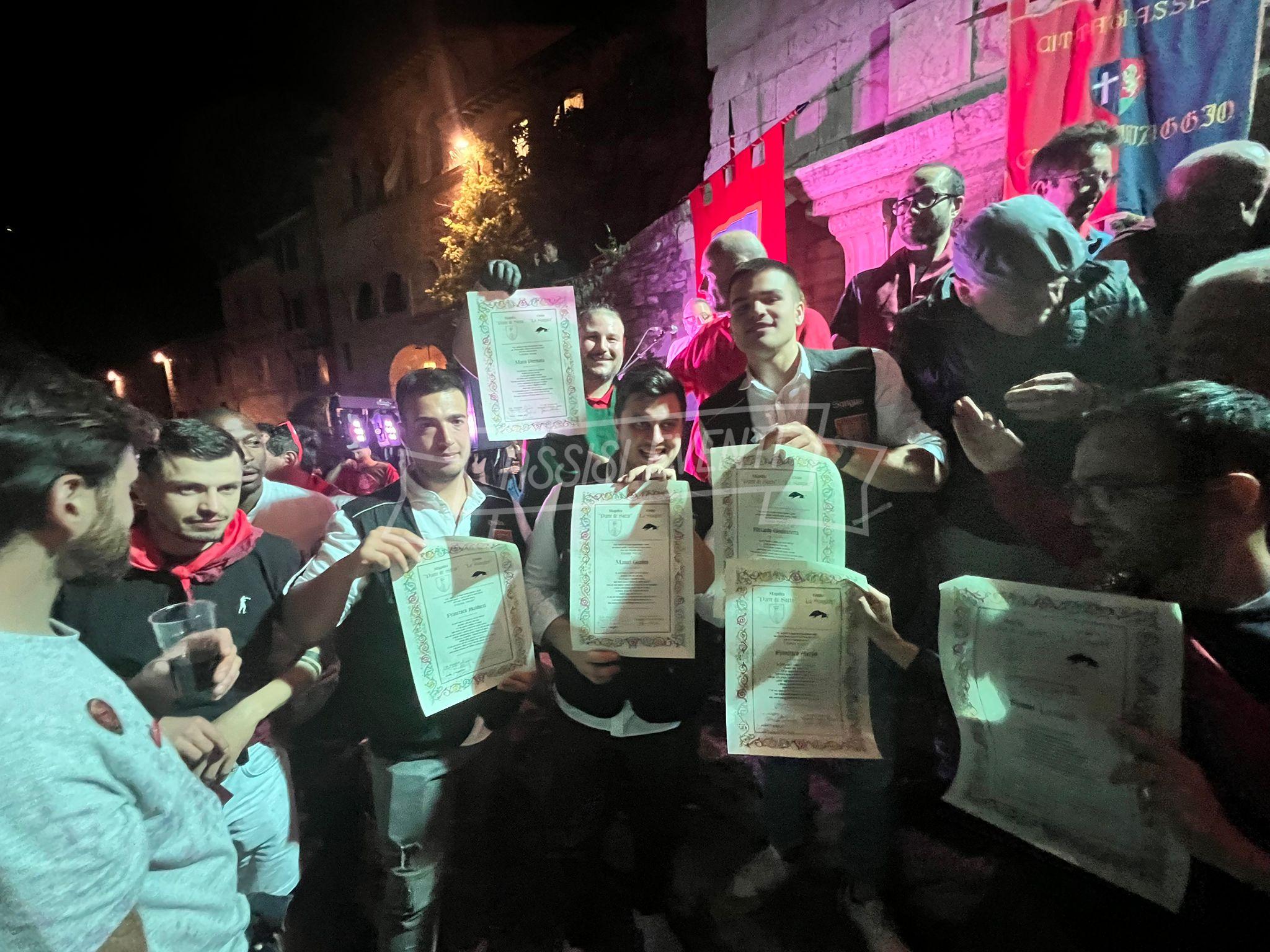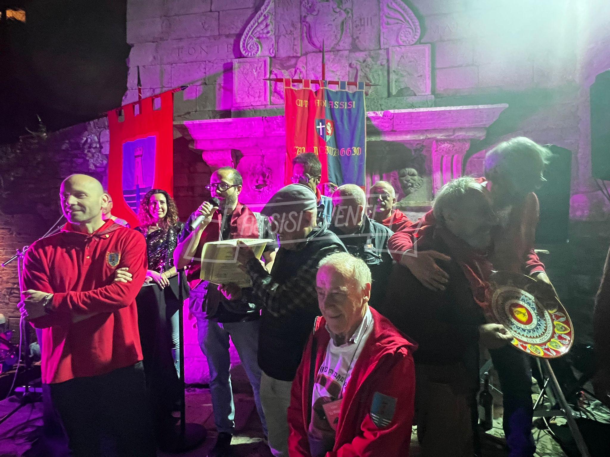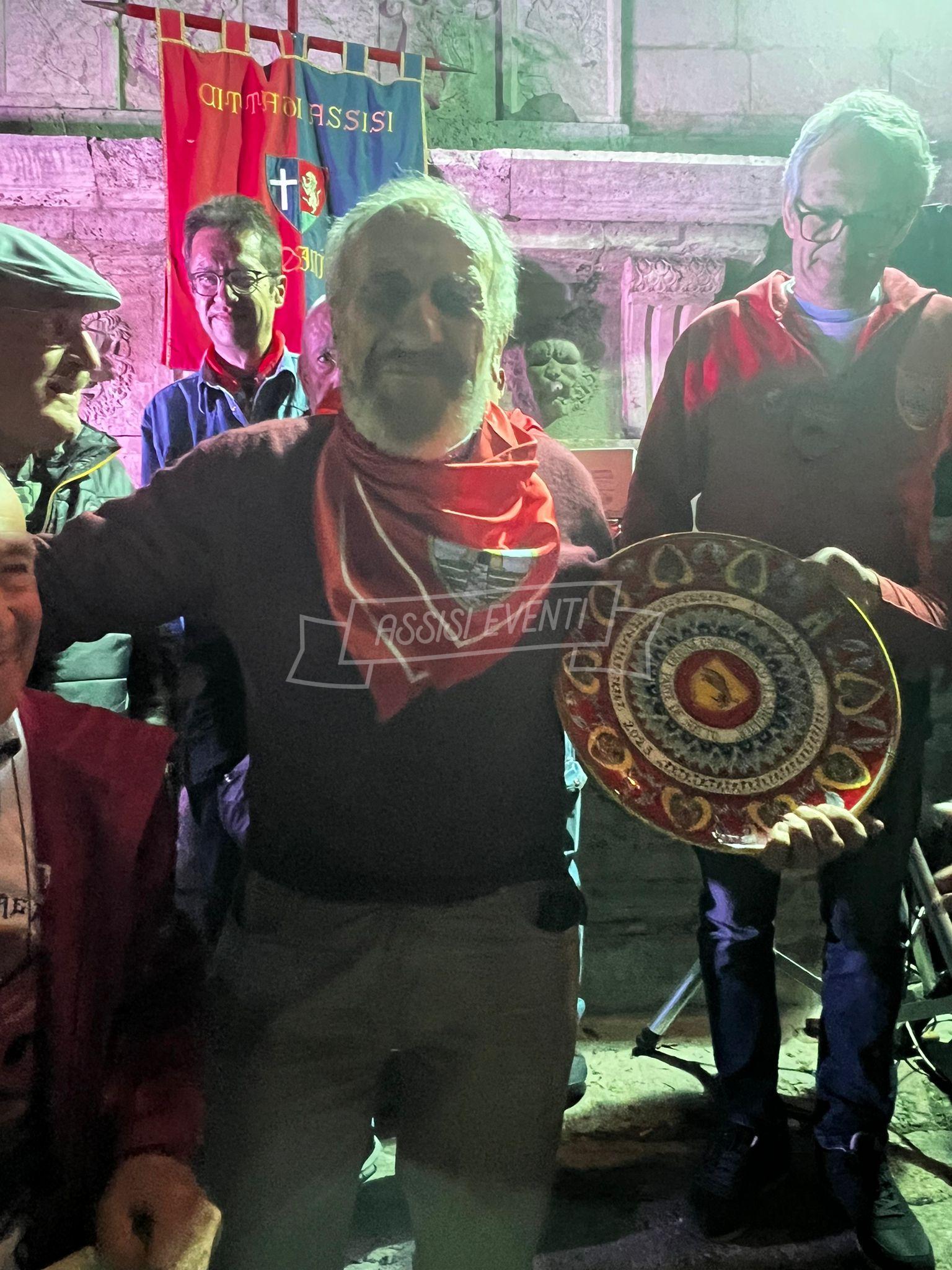 Durante la Cena della Vittoria, canti, balli, musica, e anche la consegna del tradizionale ‘Premio Aldobrandino’ da parte del ‘Sovrano Ordine Le Sanglier’. Il ‘Premio Aldobrandino’ 2023, è stato consegnato ad Ennio Dionigi, per i più in arte “Paperino”, storico Partaiolo della Magnifica Parte de Sotto, fra i più anziani della Parte. ’XVII Premio Aldobrandino’ ad Ennio Dionigi, tornato attivamente a partecipare al Calendimaggio e che maggiormente si è distinto nell’ultima edizione 2023 dei “rossi”.