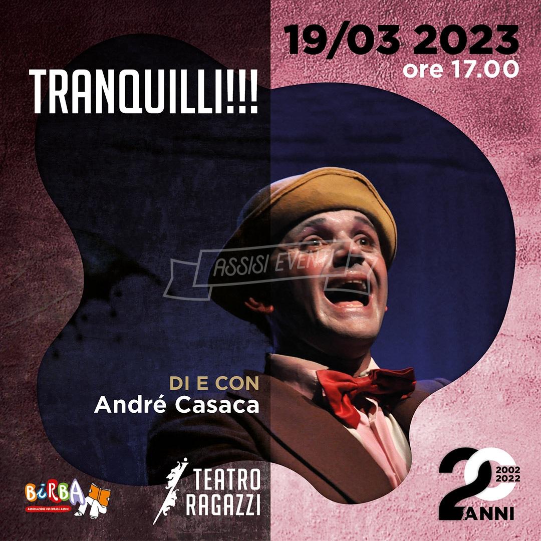 Domenica 19 marzo alle ore 17:00 il Piccolo Teatro degli Instabili ha il piacere di ospitare un delizioso spettacolo di Teatro Ragazzi organizzato in collaborazione con “Birba”: clown musica e mimo sono gli ingredienti principali di “Tranquilli!!!” di e con André Casaca, per bambini (e adulti) dai 3 anni in su.