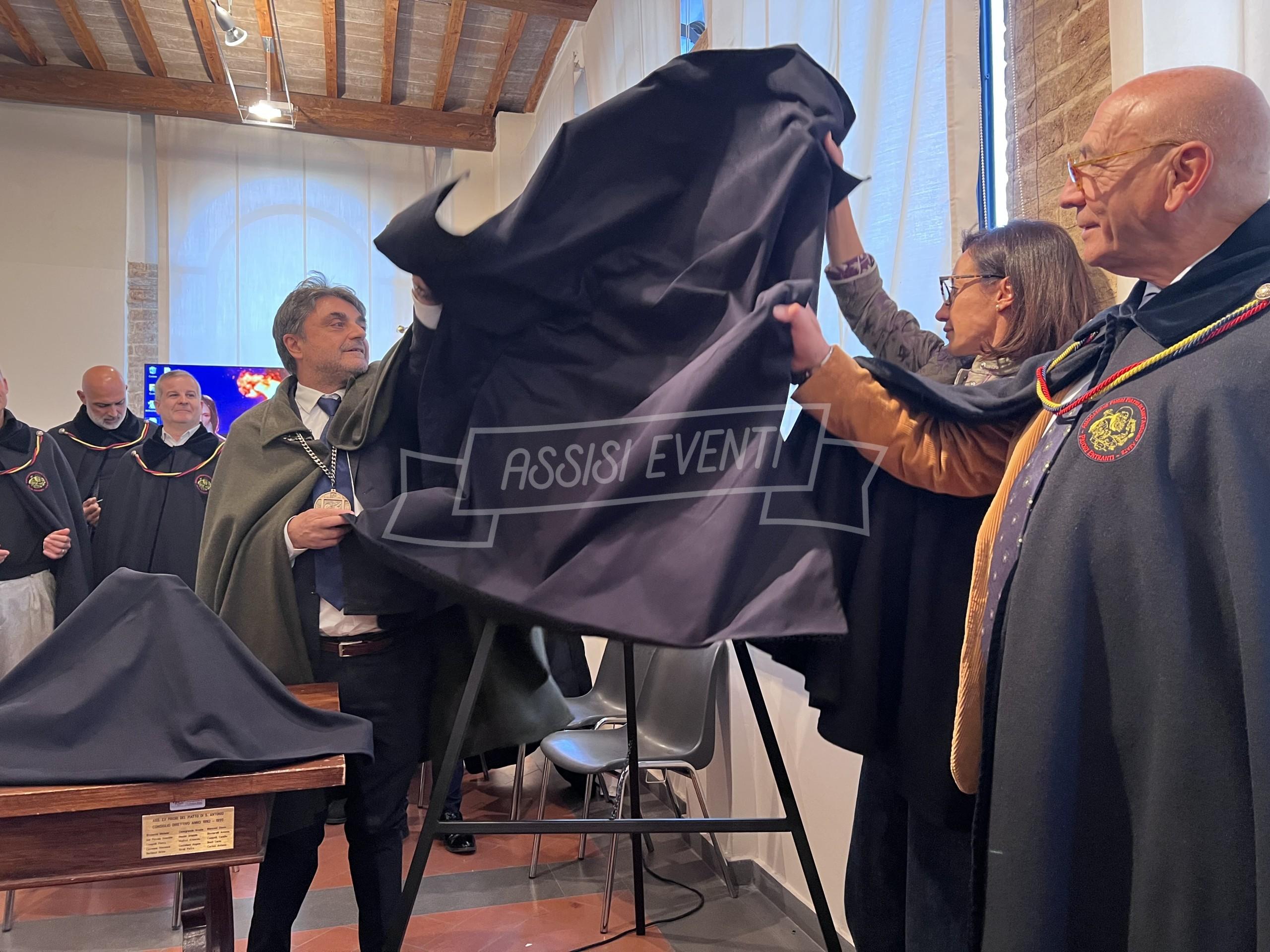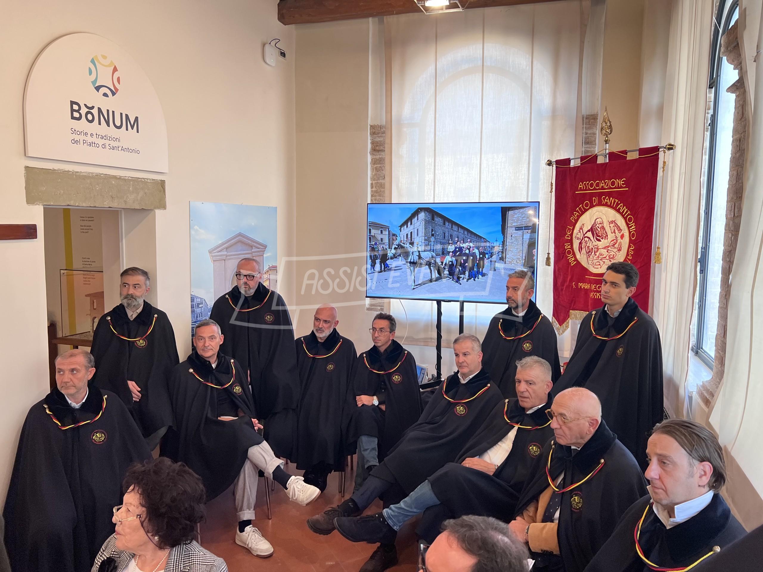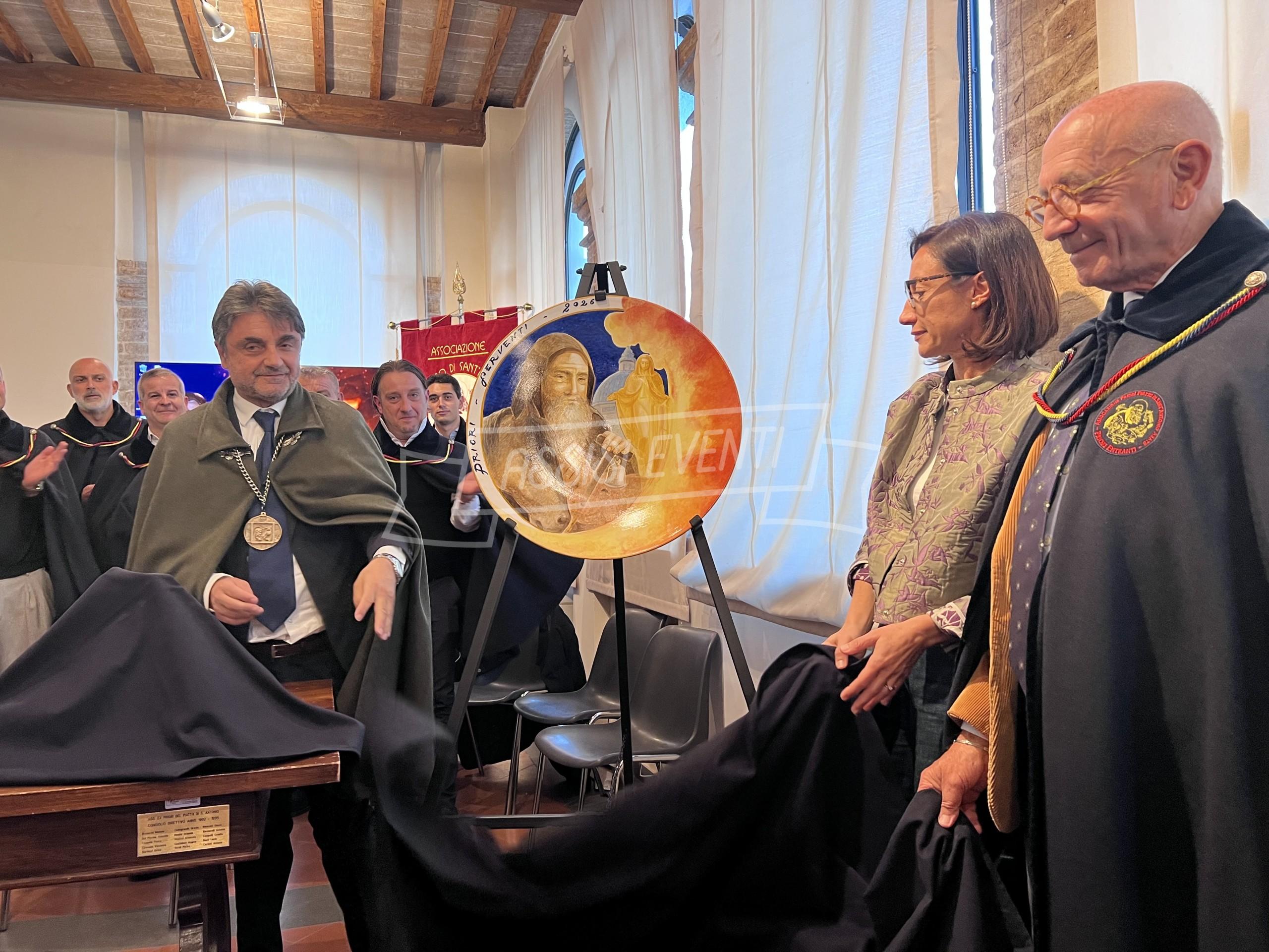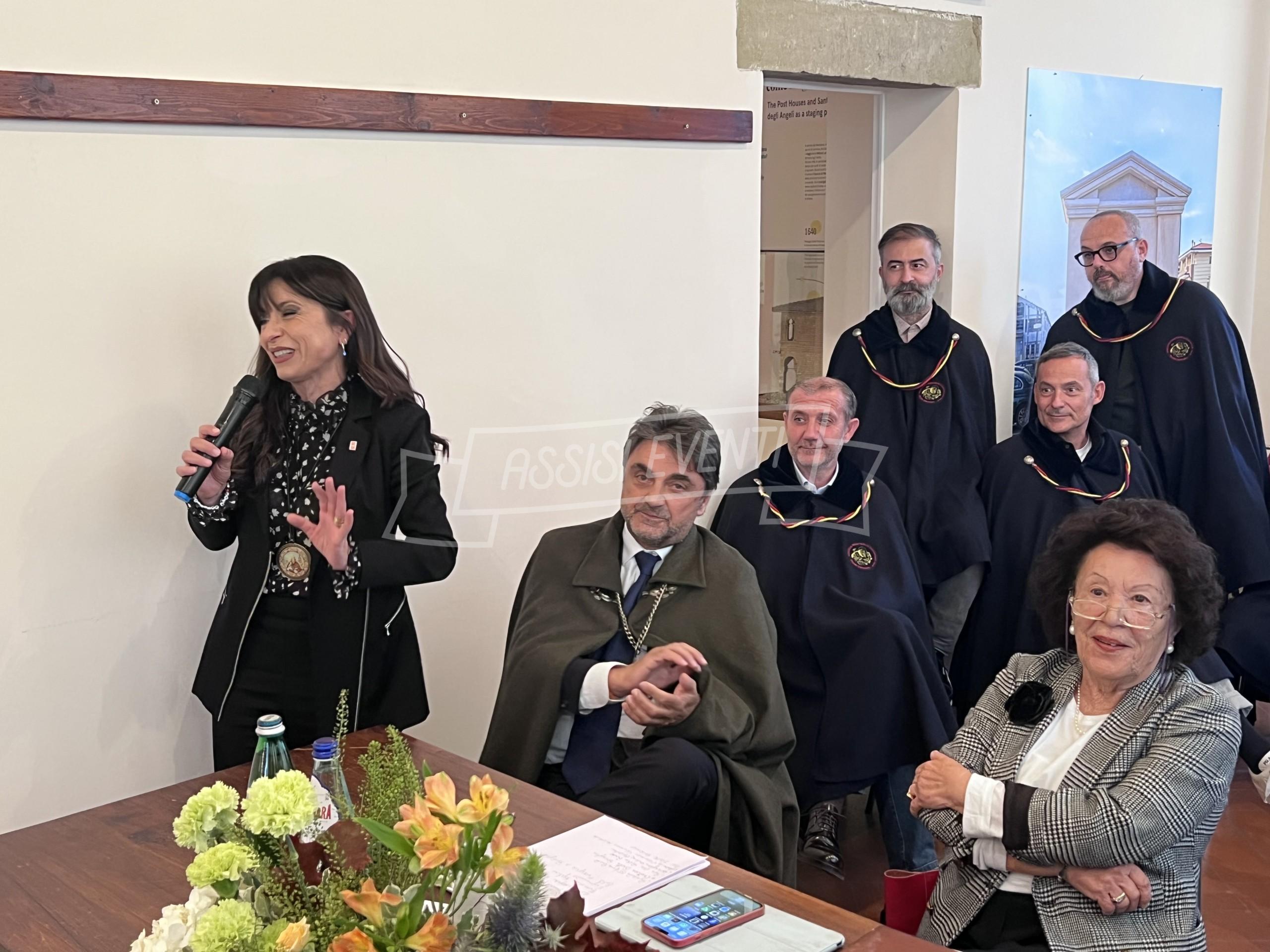 Pomeriggio di festa con i cittadini e le istituzioni, sabato 18 ottobre 2025, presso il Palazzo del Capitano del Perdono a Santa Maria degli Angeli, dove ha preso il via ufficialmente la Festa del Piatto di Sant’Antonio Abate 2026. All’ordine del giorno la presentazione dei Priori Serventi 2026 e i segni rappresentativi del Piatto. Un cerimoniale molto atteso dall’intera comunità angelana, alla presenza della Presidente della Regione, Stefania Proietti, della vicesindaco di Assisi Veronica Cavallucci, dell’assessora Scilla Cavanna, del parroco di Santa Maria degli Angeli, padre Saul Tambini, del neopresidente dell’associazione Priori Piatto di Sant’Antonio Abate, Pietro Ronca, dei rappresentanti di autorità civili e militari.