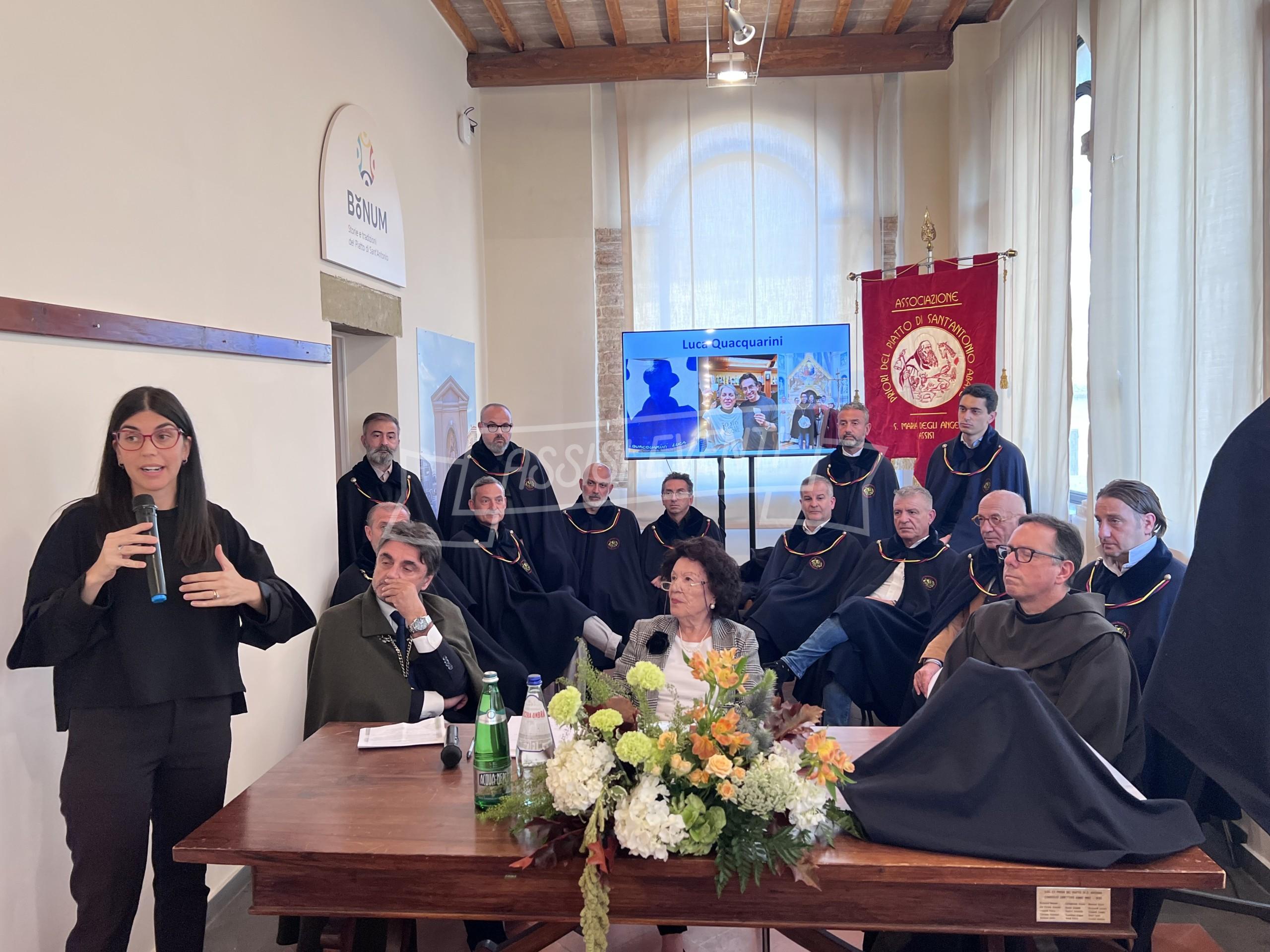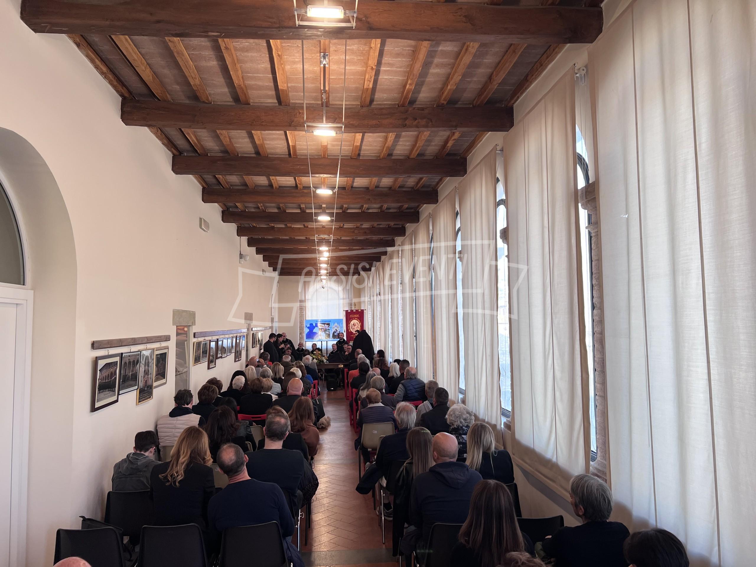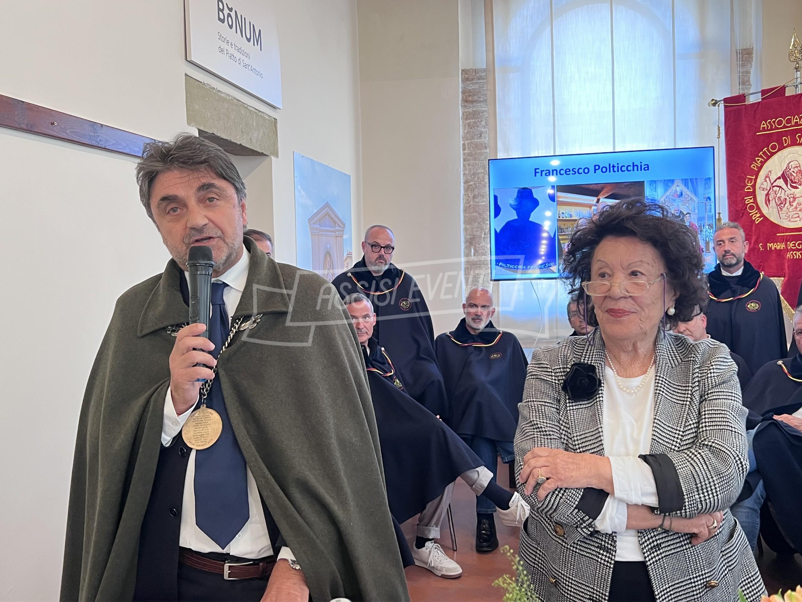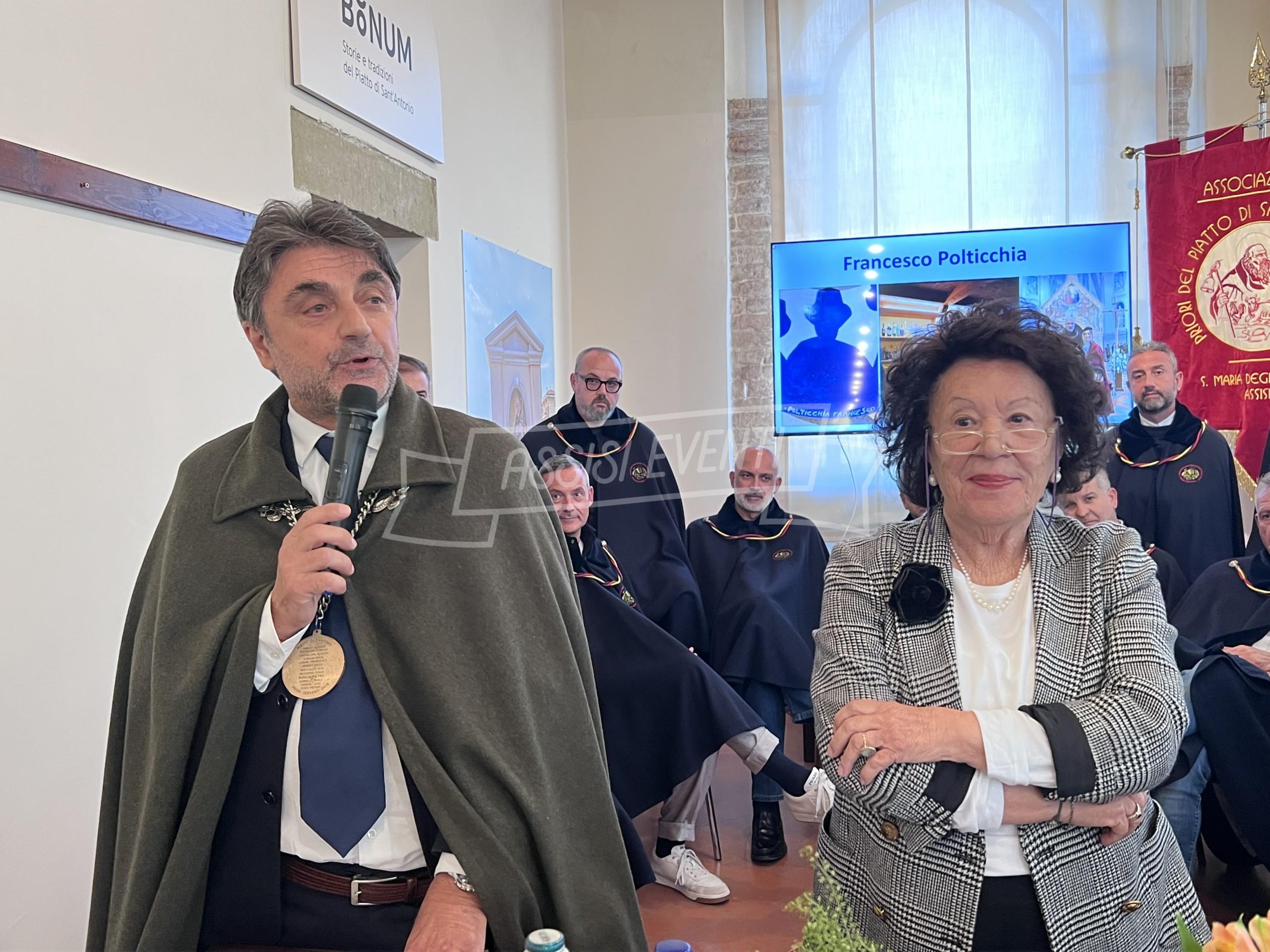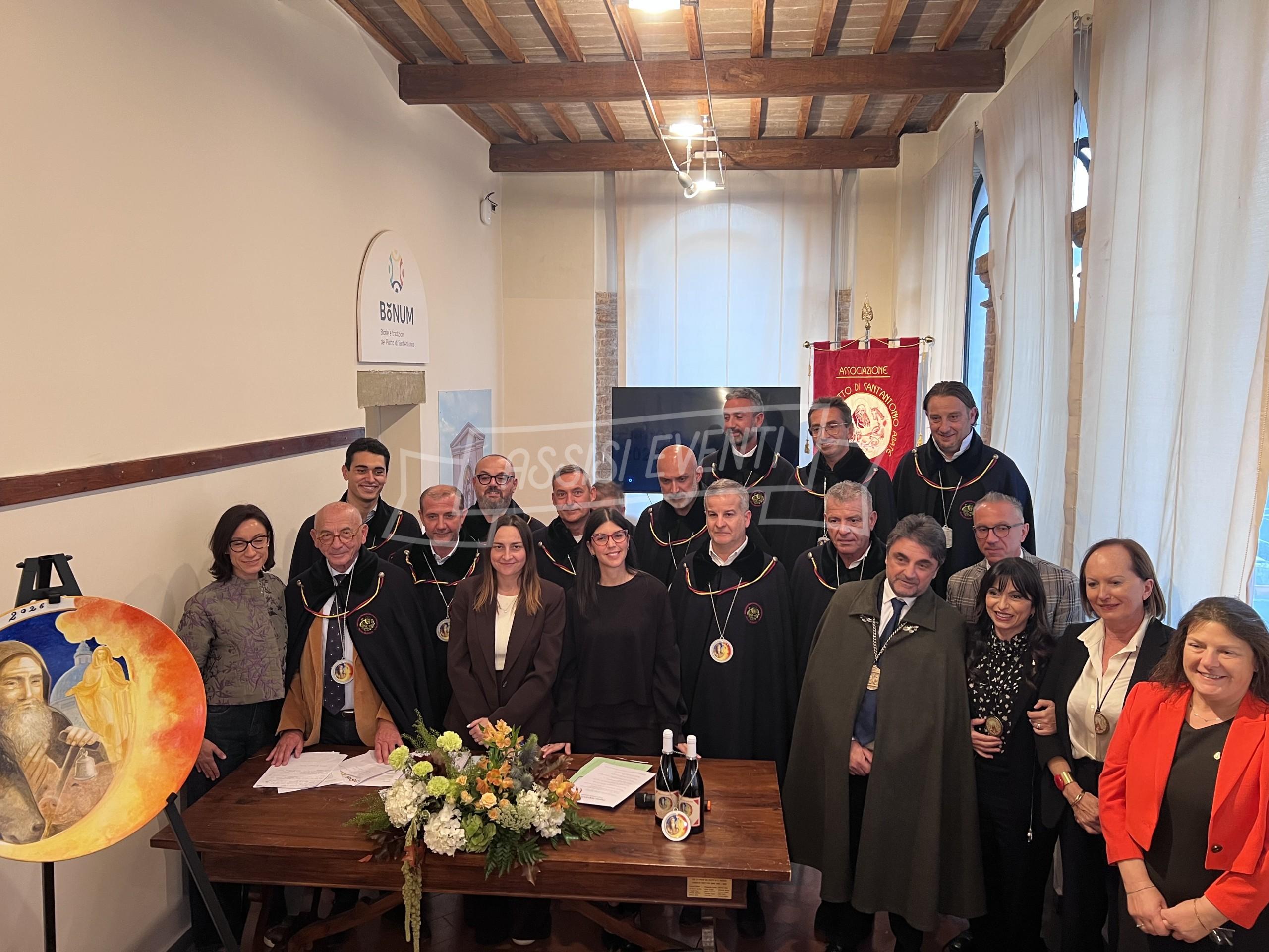Pomeriggio di festa con i cittadini e le istituzioni, sabato 18 ottobre 2025, presso il Palazzo del Capitano del Perdono a Santa Maria degli Angeli, dove ha preso il via ufficialmente la Festa del Piatto di Sant’Antonio Abate 2026. All’ordine del giorno la presentazione dei Priori Serventi 2026 e i segni rappresentativi del Piatto. Un cerimoniale molto atteso dall’intera comunità angelana, alla presenza della Presidente della Regione, Stefania Proietti, della vicesindaco di Assisi Veronica Cavallucci, dell’assessora Scilla Cavanna, del parroco di Santa Maria degli Angeli, padre Saul Tambini, del neopresidente dell’associazione Priori Piatto di Sant’Antonio Abate, Pietro Ronca, dei rappresentanti di autorità civili e militari.