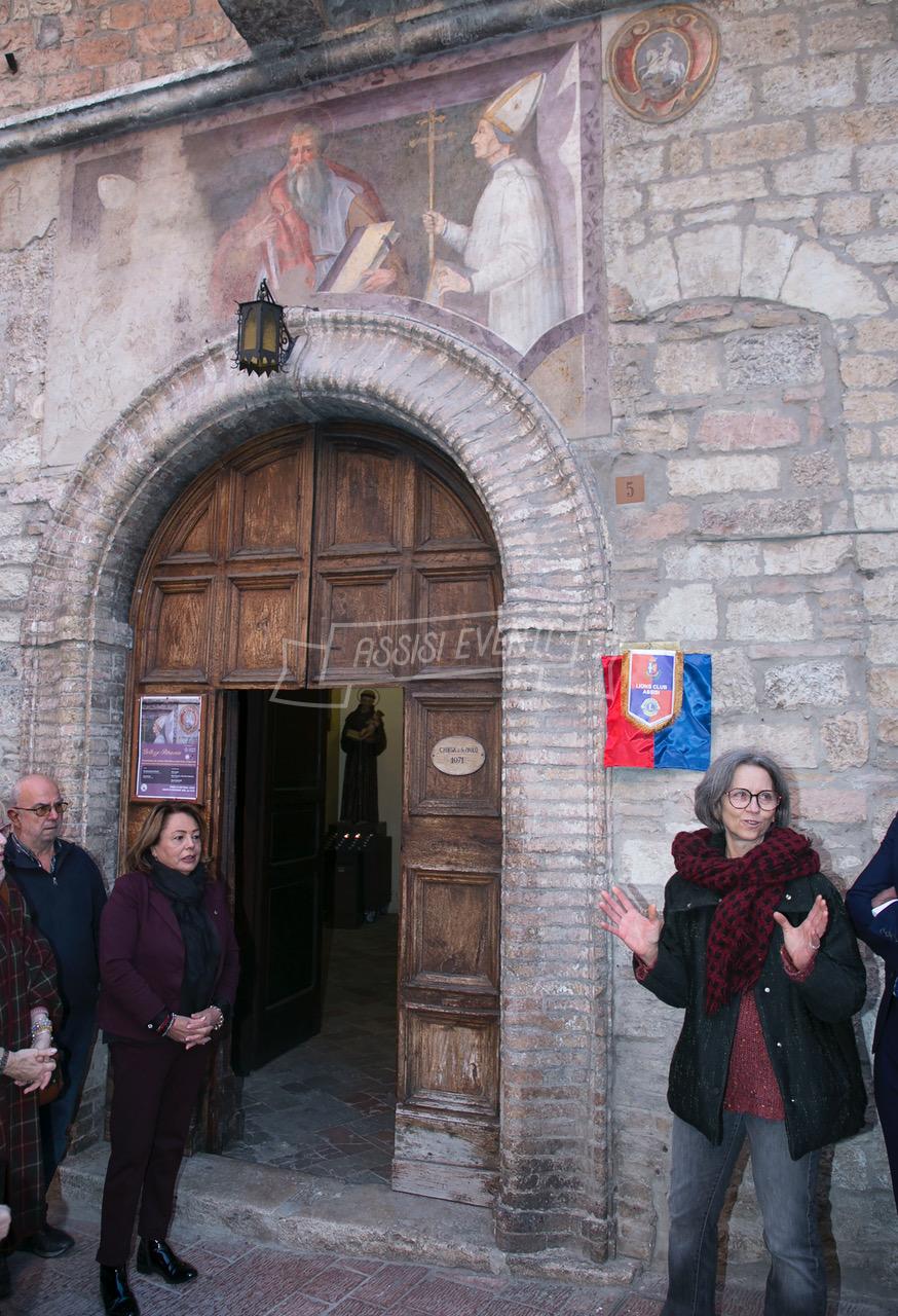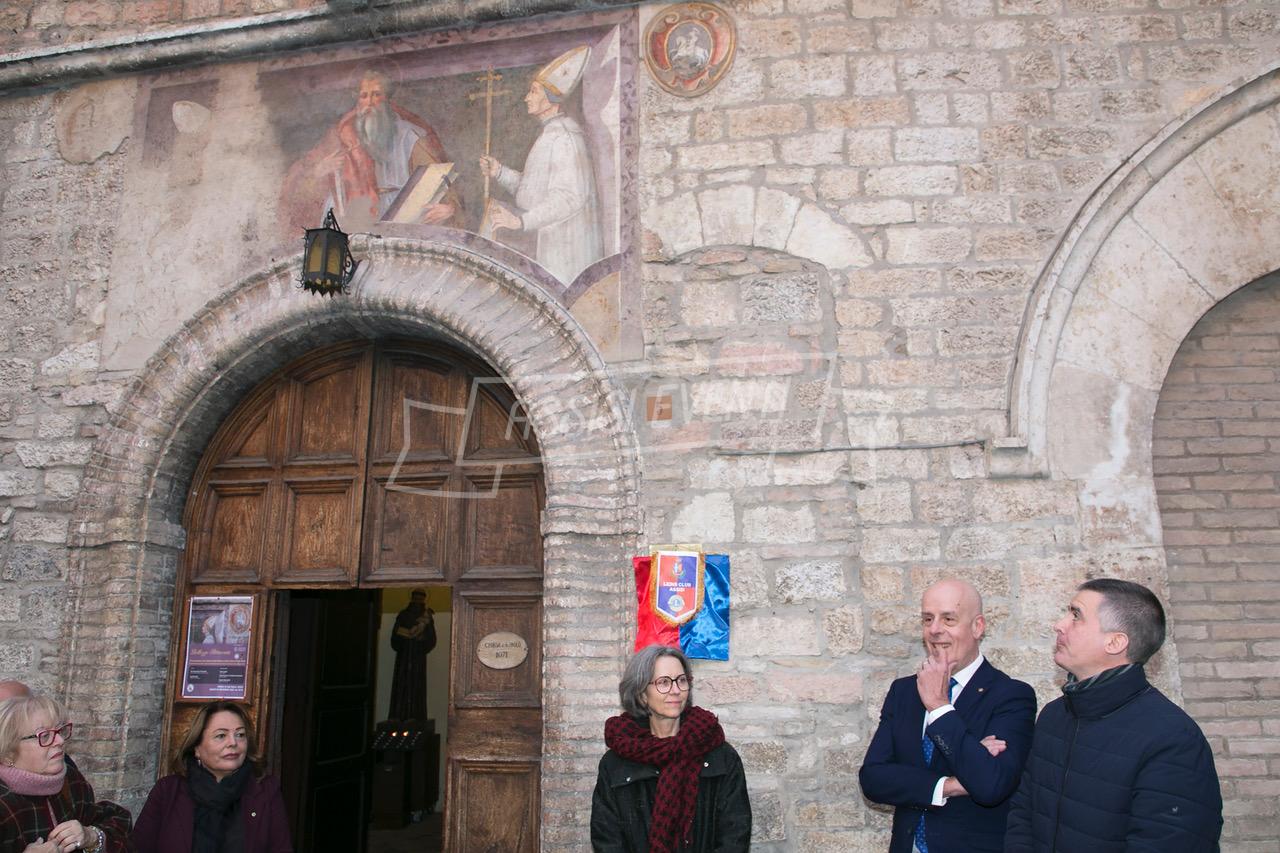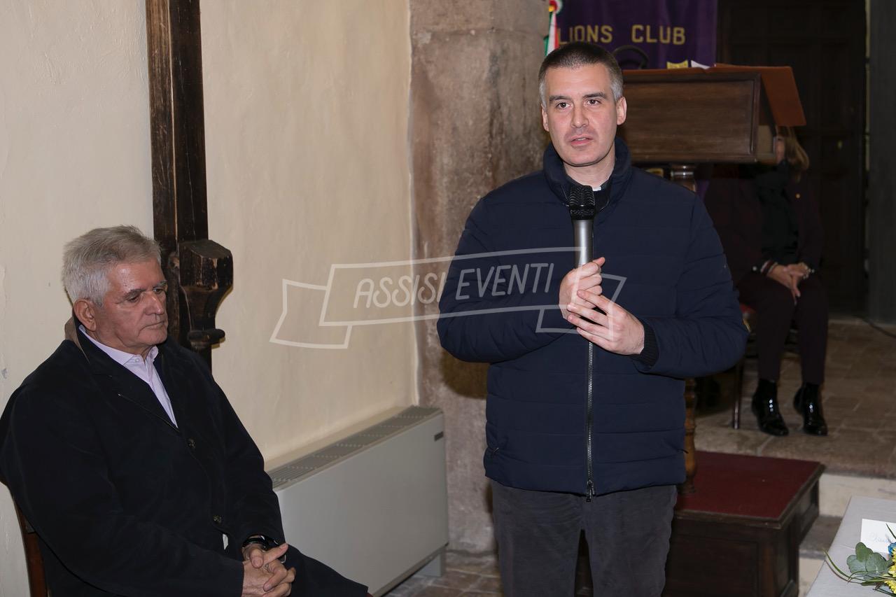 “Sabato sera in San Paolo ad Assisi, presentazione del restauro di un affresco posto sopra l’ingresso. Esistono le favole? Eccome se esistono, una è questa qui. È la fiaba di un’immagine vecchia di secoli, ma soprattutto danneggiata da una grondaia che perde acqua sopra l’affresco. La bottegaia del negozio di fronte lo dice al parroco di San Rufino e a Francesca tuttofare per i beni culturali della diocesi. Francesca lo dice a Christiane e Francesca, che fanno un primo intervento di messa in sicurezza. Non basta: Francesca è golosa e lo dice a Claudio mentre mangiano una peschina al bar di Vinti a Jangeli. Claudio lo dice ai LIons di Assisi, che ci mettono i soldi. I soldi non bastano e Francesca lo chiede a mamma Banca, che ci mette i soldi che mancano. Si fa il restauro e lo fanno Paolo, Christiane e Francesca. Sembra una favole e invece è vero. In chiesa non c’è un posto libero, e per fortuna mi sono portato la mia carrozzina da casa. Parla don Alessandro e dice grazie a tutti, Parla Luigi Rossetti che dei LIons è il presidente, e dice grazie anche lui. Poi parla Claudio Menichelli, che è quello delle peschine che ha messo a posto tutto. Parlo io come marito della restauratrice. Era proprio necessario? Non voleva lasciarmi solo a casa. Comunque dico che quel malconcio dipinto è di Dono Doni e non me ne ero accorto prima: Dono Doni che fu amico di Giorgio Vasari, che lavorò tanto ma del quale non si sa niente perché stava sempre a spasso, tra Roma e Firenze. Ma soprattutto perché aveva sposato una donna di Perugia e poi una di Foligno, e le chiese di Perugia e di Foligno son tutte cambiate, o hanno messo i quadri in magazzino. Poi parla la mia sposa, e per me resta il perfetto esempio di quanto siano stati bravi gli insegnanti d’italiano della Stranieri di Perugia: quasi quasi mi ci voglio fidanzare. Il tutto avviene sotto lo sguardo di Simonetta Manganelli, che da cerimoniere dei LIons fa la fatina azzurra e dà la parola a questo e a quello. Addirittura Francesco Raspa ha fatto spostare il cavo della luce che pendeva sopra il dipinto appena restaurato: come a dire, prima l’acqua e poi la luce? Tra nemmeno un mese sarà Natale, il primo regalo è già arrivato. Miracolo delle peschine di Vinti!”.