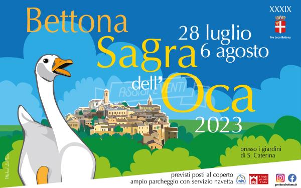 Torna anche quest’anno l’attesissima Sagra dell’Oca di Bettona, arrivata alla sua 39° edizione, dal 28 luglio al 6 agosto 2023. Come sempre al centro i sapori della tradizione racchiusi nelle ricette a base di oca che hanno reso famoso e rinomato questo appuntamento culinario. L’antico borgo di Bettona, negli spazi dei Giardini di Santa Caterina sarà il cuore pulsante della Sagra, con gli stand e tutto lo staff della Proloco di Bettona, pronti a servire piatti ottimi. Novità di questo anno sarà la piazza principale del borgo, animata con ben due punti musicali e attività dedicate ai più piccoli.