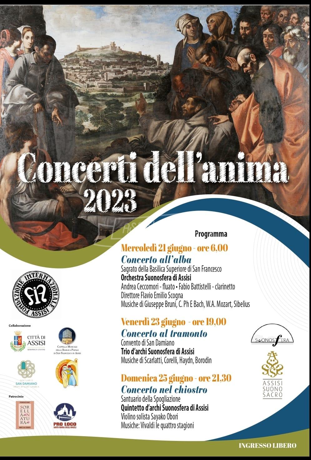 “Il Presidente della Fondazione Internazionale Assisi – comunica l’associazione – ringrazia il maestro Flavio Emilio Scogna per aver magistralmente diretto il concerto all’alba in cui si è esibita l’orchestra Suonosfera di Assisi insieme ad Andrea Ceccomori al flauto, Fabio Battistelli al clarinetto e il trio d’archi Suonosfera di Assisi per il concerto al tramonto, la Città di Assisi per il sostegno, nella persona del sindaco Stefania Proietti, padre Marco Moroni per il Sacro Convento di Assisi, Fra Mauro Botta per il Convento di San Damiano, padre Marco Gaballo per il Santuario della Spogliazione e il Vescovo di Assisi Monsignor Domenico Sorrentino per aver concesso gli spazi ed aver reso possibili gli eventi”.